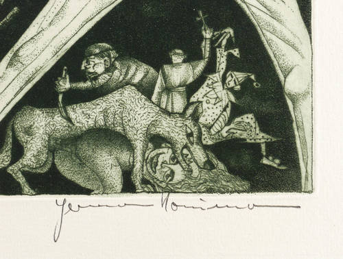 1966-1969. Punzenstich, in Blauschwarz, auf festem gelblichem Velin. – Originale Künstlergrafik, von Hermann Naumann. – 23,3 x 15,0 cm (Darstellung / Platte), 31 x 20 cm (Blatt).