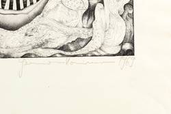 1969. Lithografie / Federlithografie, in Punktiermanier, in Schwarz, auf hartem hellchamois Velin. – Originale Künstlergrafik, von Hermann Naumann. – Künstlerexemplar (e.a.). – 26,7 x 21,4 cm (Darstellung / Druckbild), 50 x 38 cm (Blatt).