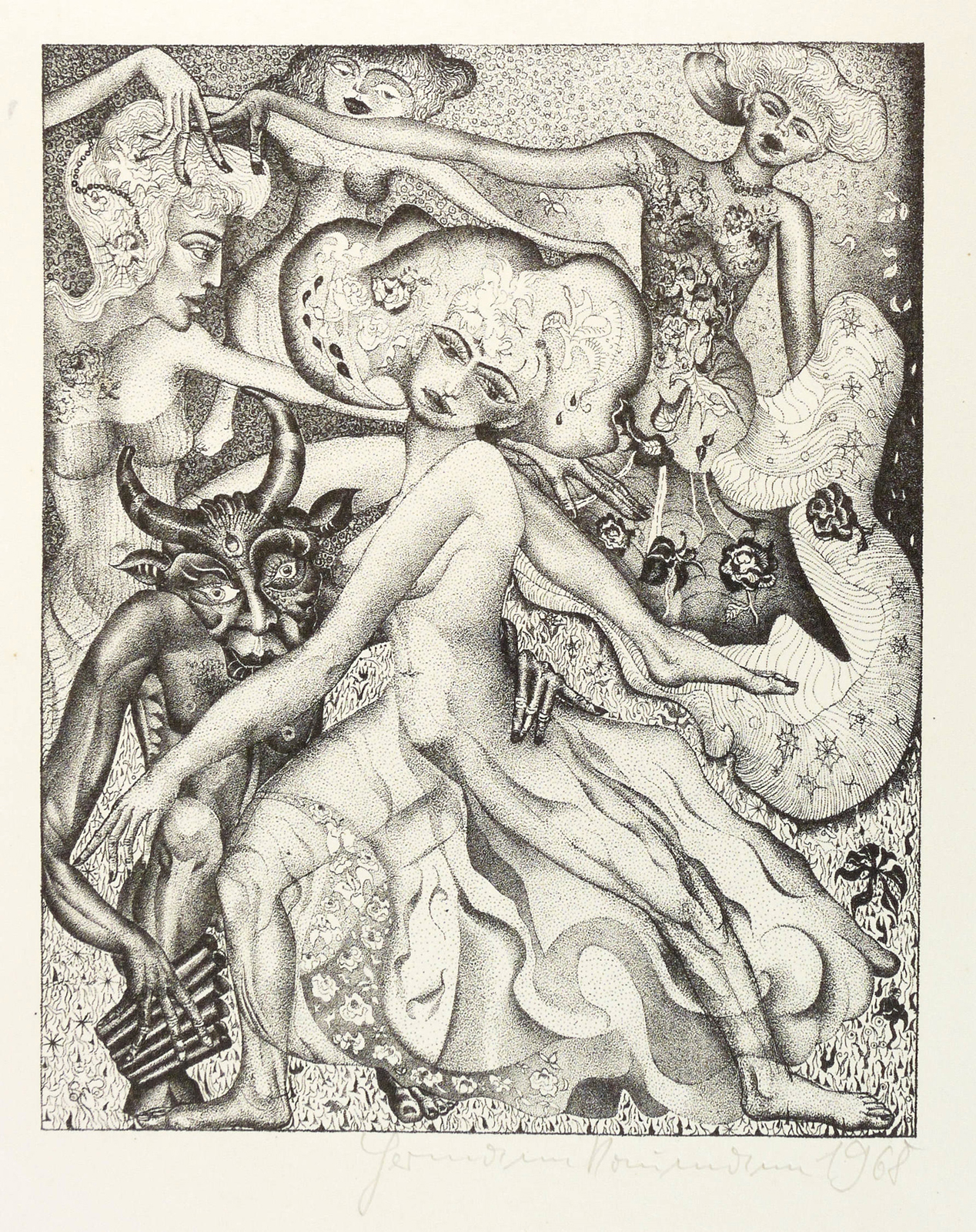 Naumann, Hermann. – Soledades (Luis de Gongora). – Blatt 2. – „Nymphenreigen mit Satyr”.