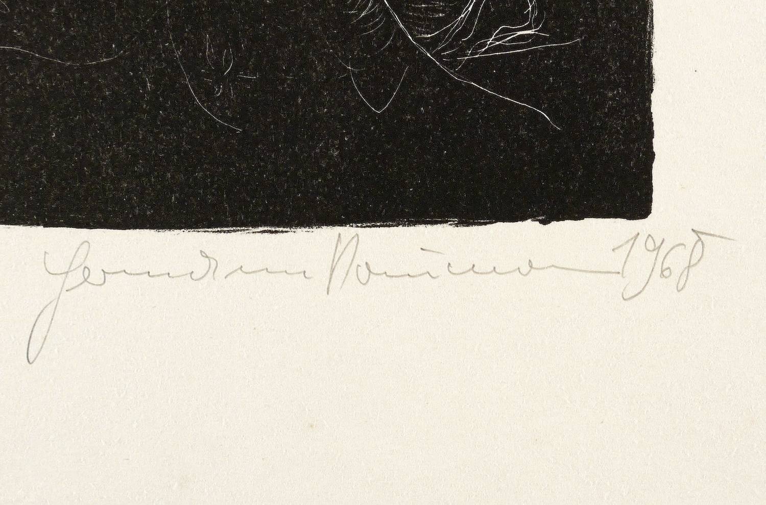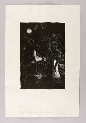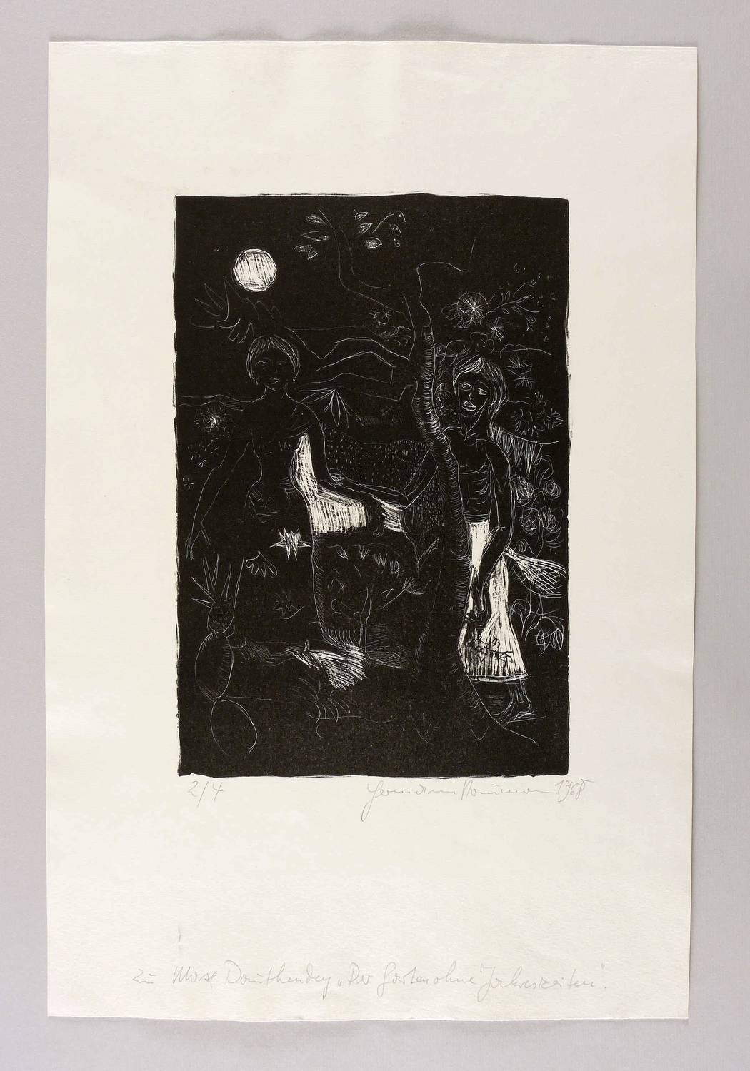 Rechts unten in Bleistift signiert und datiert: ″Hermann Naumann 1968″. Links Auflagenbezeichnung. Im unteren Blattrand bezeichnet: ″zu Max Dauthendey 'Der Garten ohne Jahreszeiten'″. – Eines von nur vier Exemplaren der kleinen Auflage. - Selten. – Unscheinbare Lagerspuren. Guter Zustand.