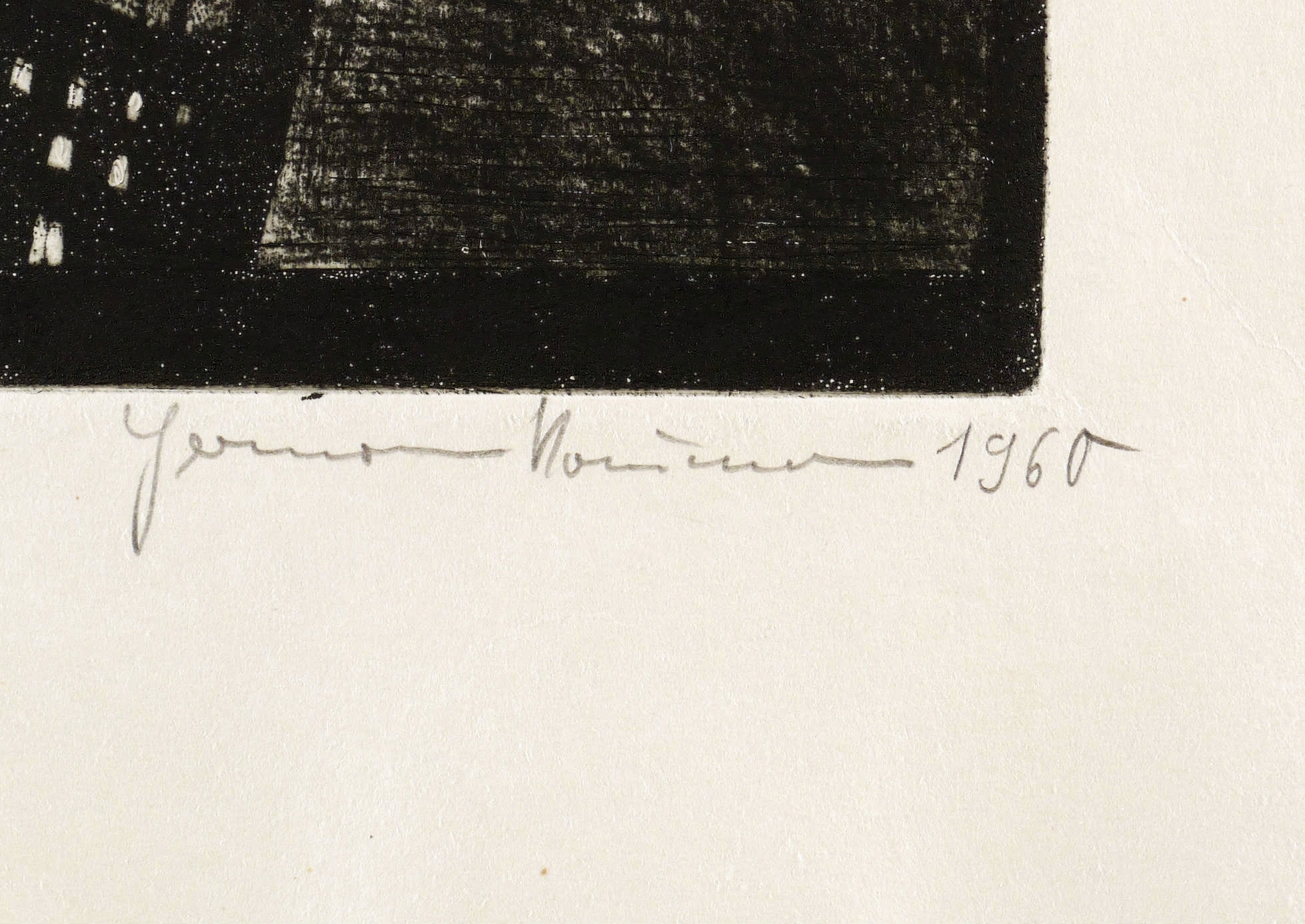 1960. Kupferstich / Punzenstich & Kaltnadel, in Schwarz, auf schwerem hellchamois Velin. – Originale Künstlergrafik, von Hermann Naumann. – 50,0 x 29,1 cm (Darstellung / Stein), 62 x 45 cm (Blatt).