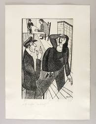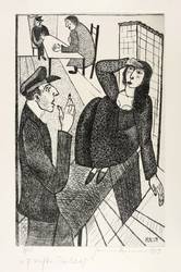 Hermann Naumann (1930 Kötzschenbroda-Radebeul - 2025 Dittersbach-Dürrröhrsdorf). Deutscher Maler, Grafiker und Bildhauer. 1946 Lehre als Steinmetz und Privatausbildung zum Plastiker bei Burkhart Ebe. 1947-49 Bildhauerlehre bei Herbert Volwahsen. 1950 Aufnahme in den Verband Bildender Künstler Deutschlands (VBKD) und Bezug des Ateliers im Künstlerhaus Dresden-Loschwitz. Seitdem freischaffend tätig. Gleichzeitig Beginn der Beschäftigung mit Malerei und Druckgrafik; erste Ölgemälde und Illustrationen zu Dostojewski. 1952 die berühmte Punzenstich-Folge zu Franz Kafka "Der Prozeß". 1969 Auszeichnung "Schönste Bücher der DDR" für die Illustrationen zu "Meine jüdischen Augen" beim Verlag Philipp Reclam jun. Leipzig. Ausstellungen: 1977 Kunsthalle Rostock, 1988 Stadtmuseum Bautzen, 2010, '13 und '22 Galerie Himmel Dresden.