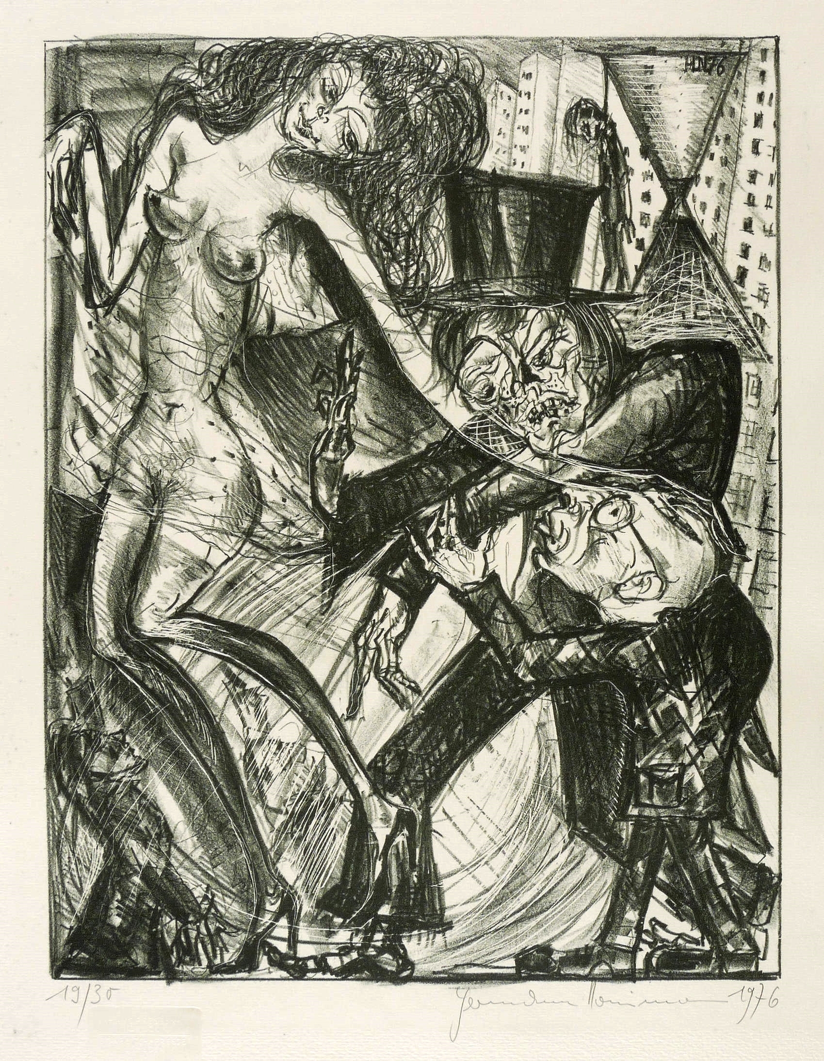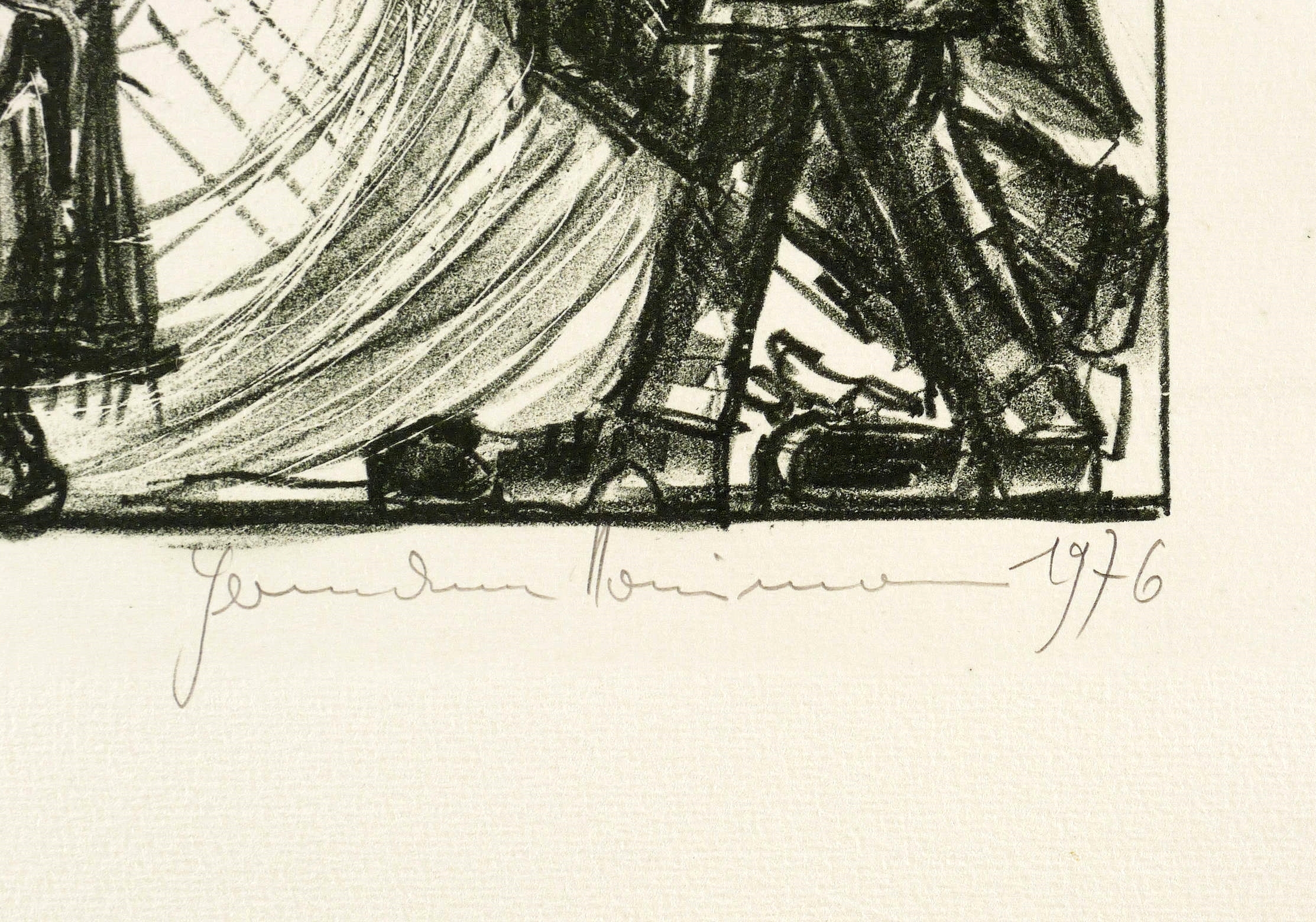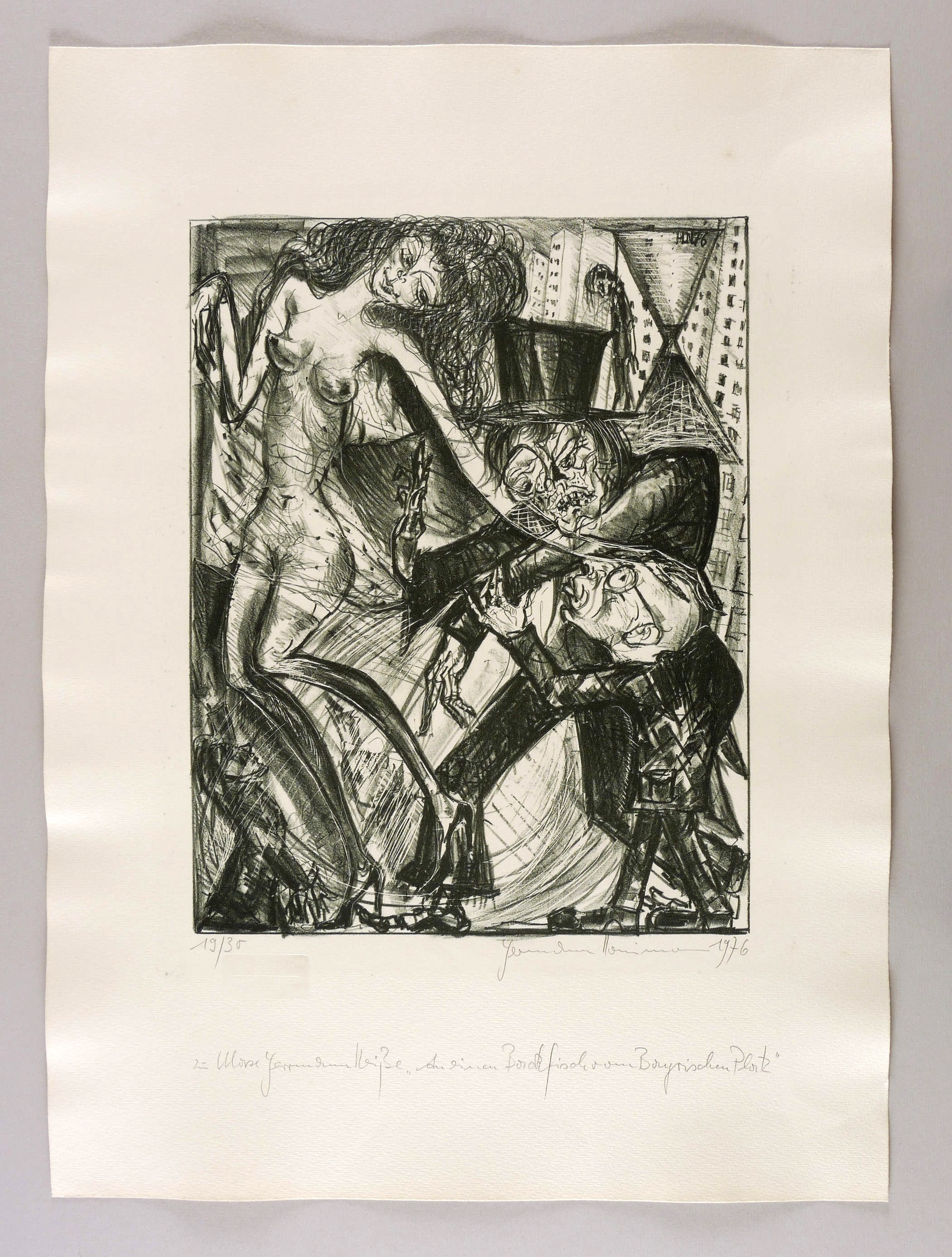 1976. Lithografie / Kreidelithografie, in Schwarz, auf gehämmertem gelblichem Maschinenpapier. – Originale Künstlergrafik, von Hermann Naumann. – Auflage Exemplar Nr. 19/30. – 40,2 x 31,0 cm (Darstellung / Druckbild), 65 x 47 cm (Blatt).