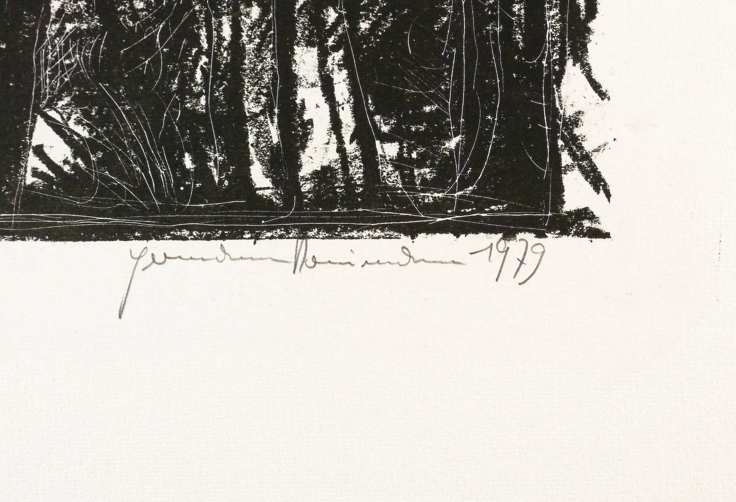 1979. Lithografie / Pinsel- & Kreidelithografie, partiell geschabt, in Schwarz, auf genarbtem chamois Velin. – Originale Künstlergrafik, von Hermann Naumann. – Auflage Exemplar Nr. 7/7. – 40,4 x 30,0 cm (Darstellung / Einfassungslinie), 64 x 47 cm (Blatt).