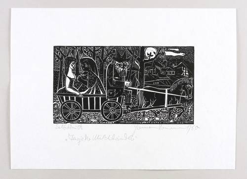 Rechts unten in Bleistift signiert und datiert: ″Hermann Naumann 1960″. Links bezeichnet: ″Selbstdruck″. Darunter Titel: ″Tewje der Milchhändler″. – Sehr guter Zustand.