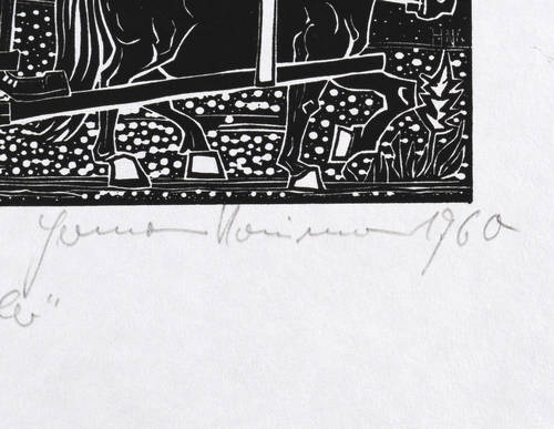 1960. Holzschnitt, in Schwarz, auf rauem wolkigem hellem Velin. – Originale Künstlergrafik, von Hermann Naumann. – 15,0 x 27,1 cm (Darstellung / Druckstock), 32 x 44 cm (Blatt).