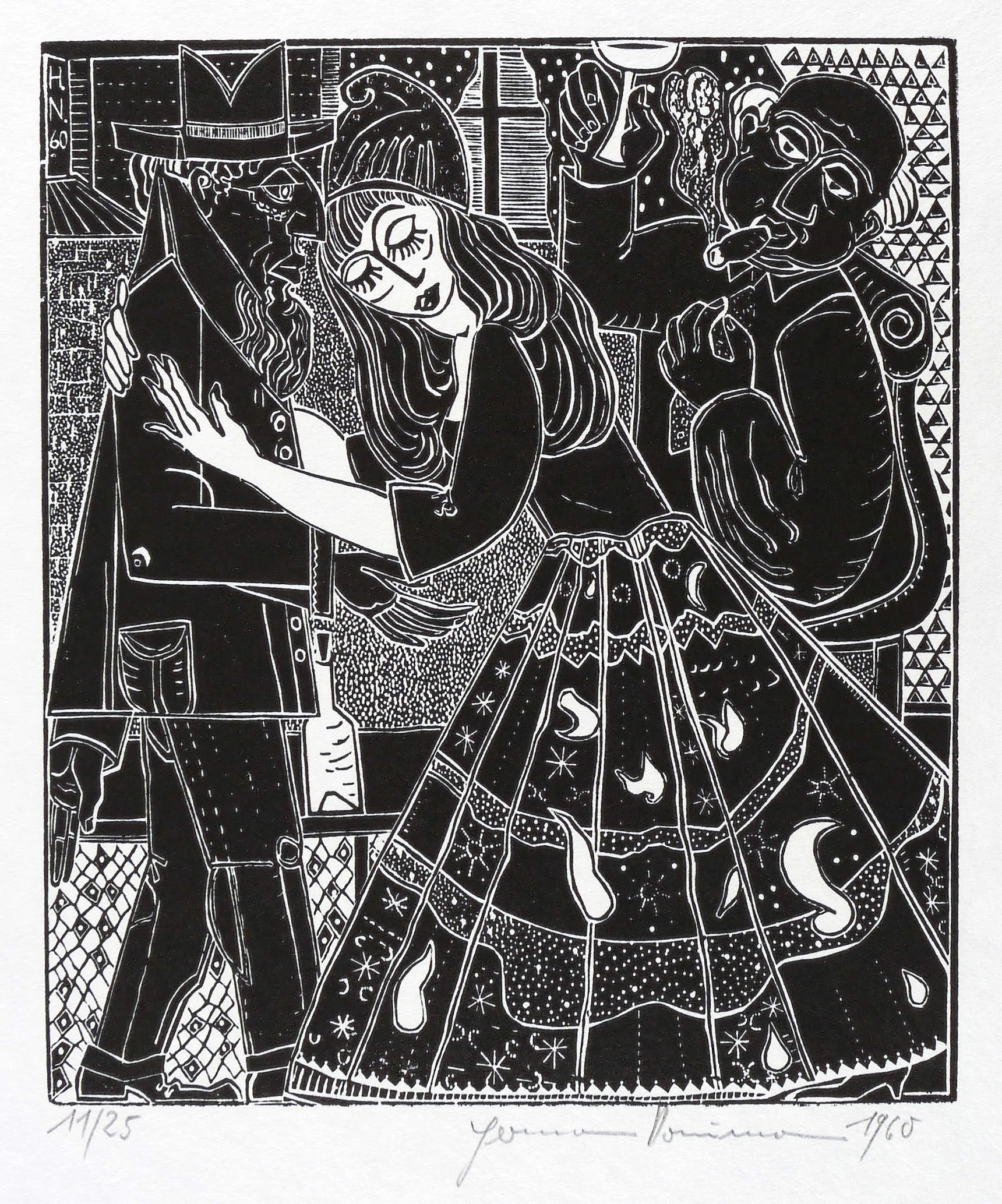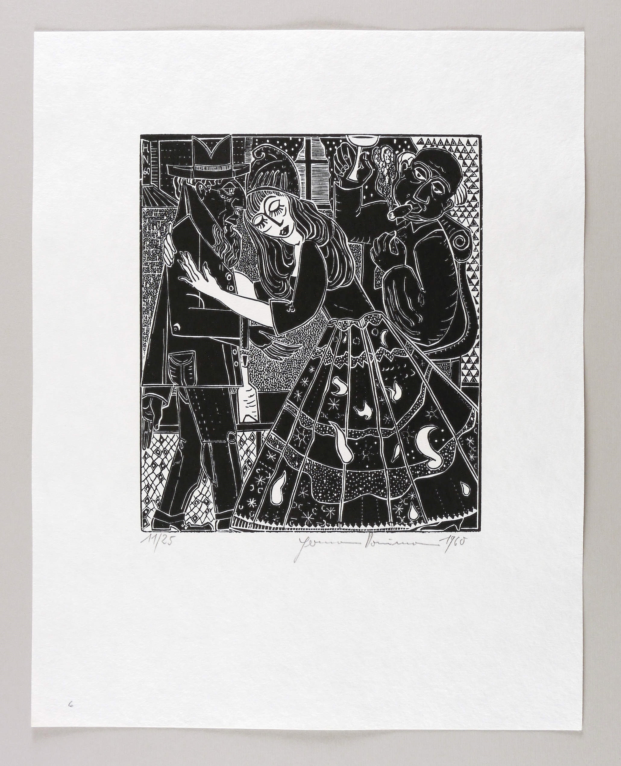 Rechts unten in Bleistift signiert und datiert: ″Hermann Naumann 1960″. Links Auflagenbezeichnung. Im Druckstock links oben Signatur und Jahr: ″H.N. 60″. – Aus der 12-teiligen Holzschnitt-Folge zu ″Tewje der Milchmann″ (Scholem Alejchem). – Sehr guter Zustand.