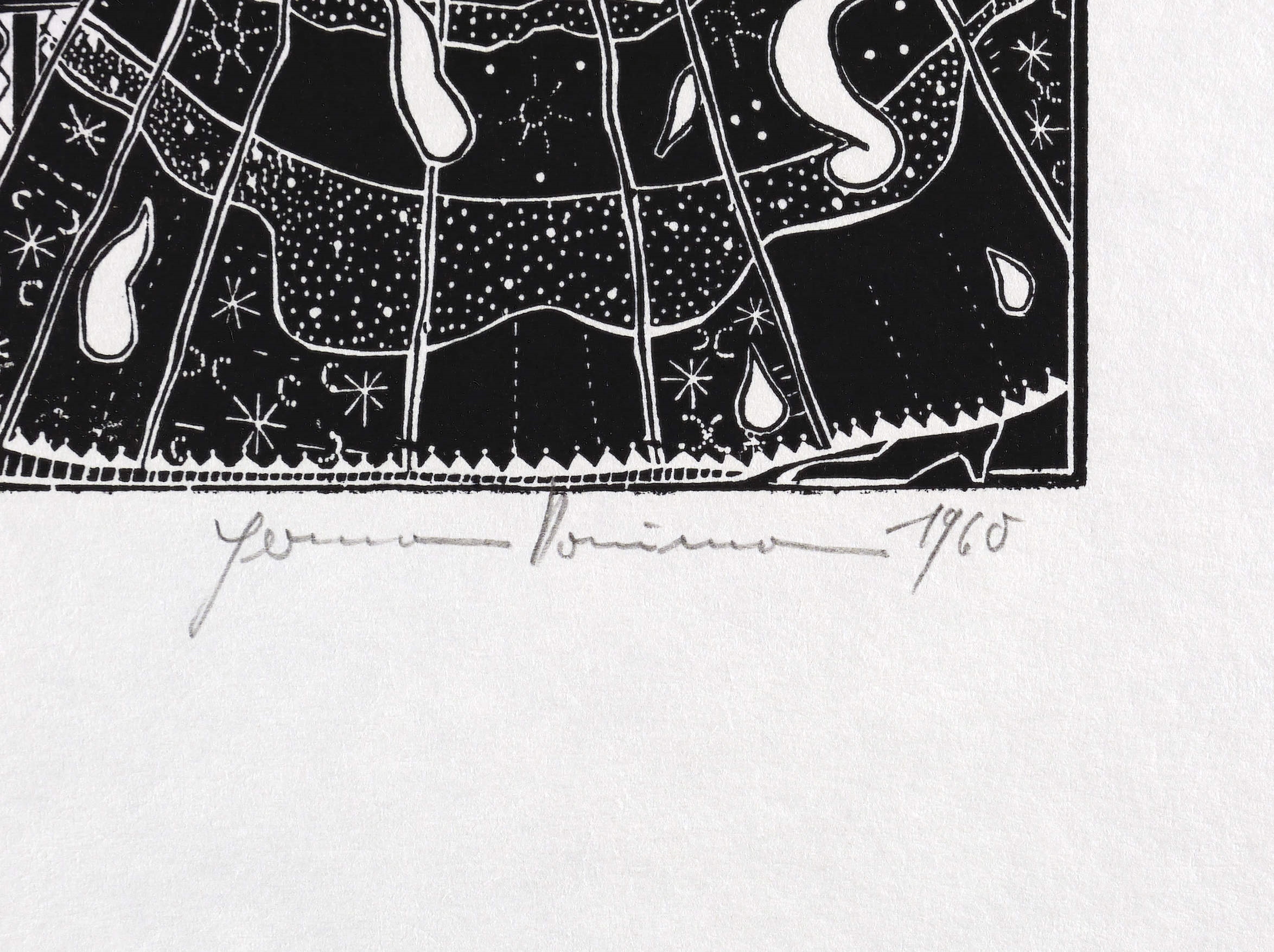 1960. Holzschnitt, in Schwarz, auf rauem wolkigem chamois Velin. – Originale Künstlergrafik, von Hermann Naumann. – Auflage Exemplar Nr. 11/25. – 28,0 x 24,1 cm (Darstellung / Druckstock), 49 x 39 cm (Blatt).