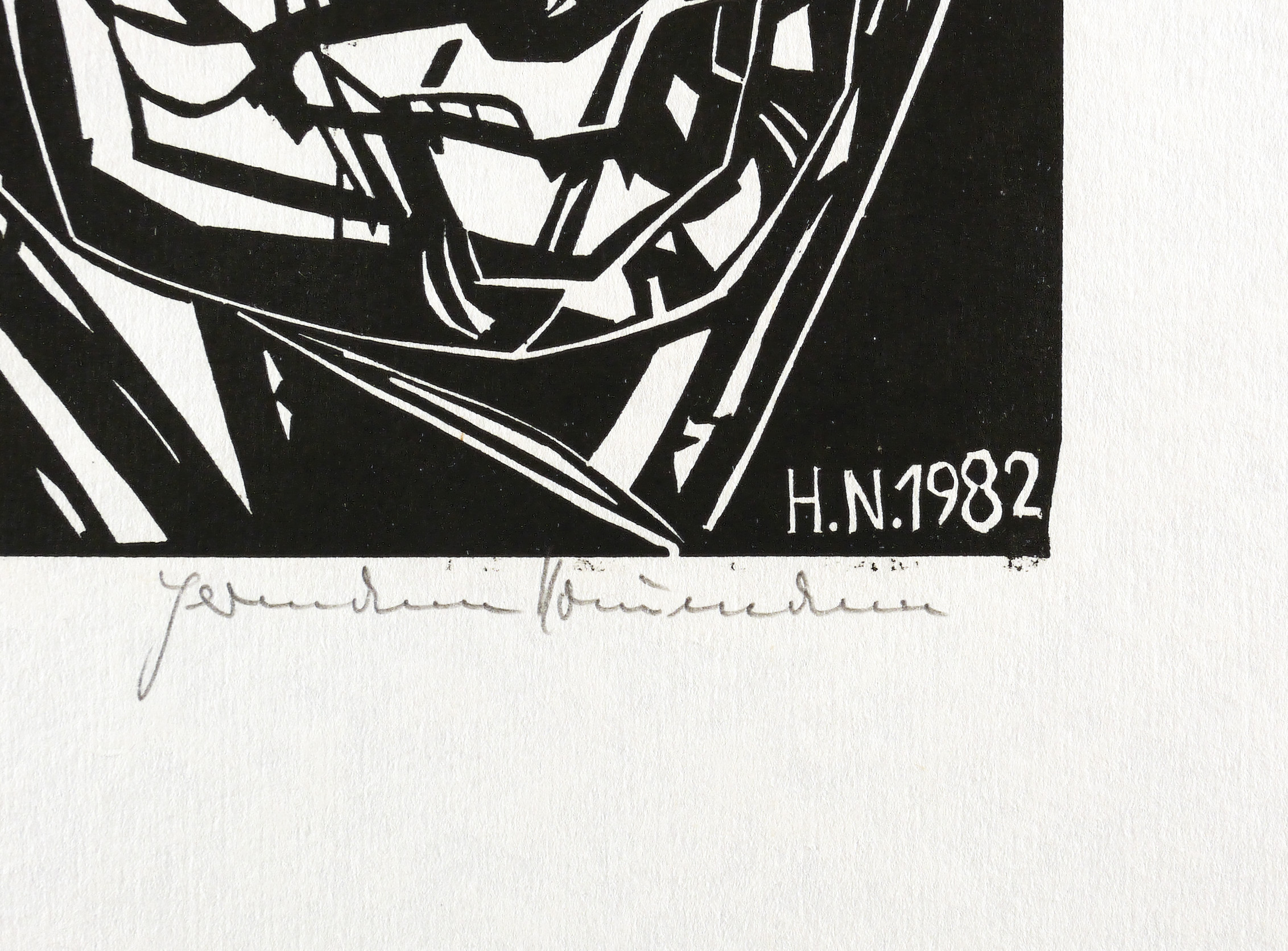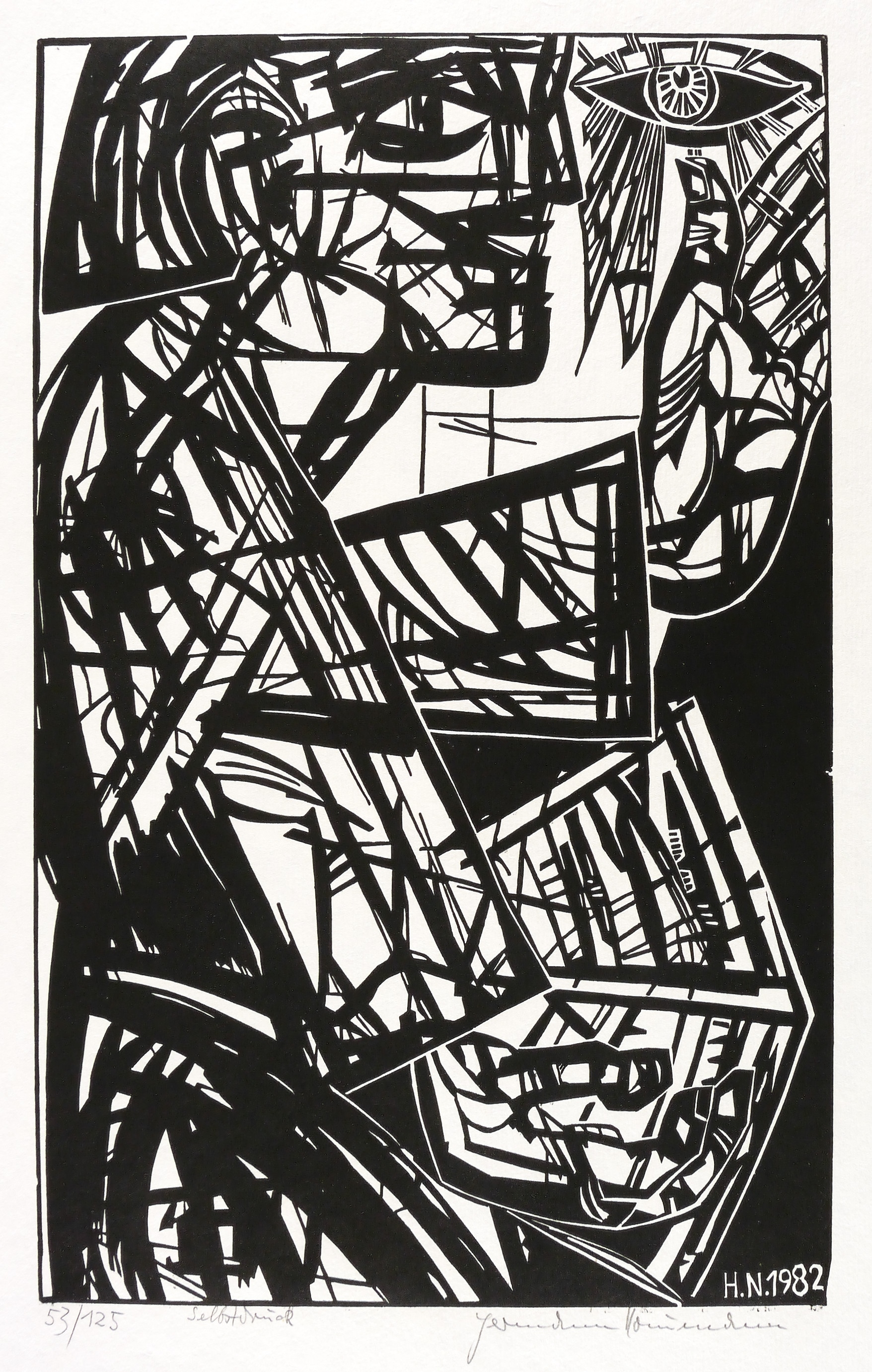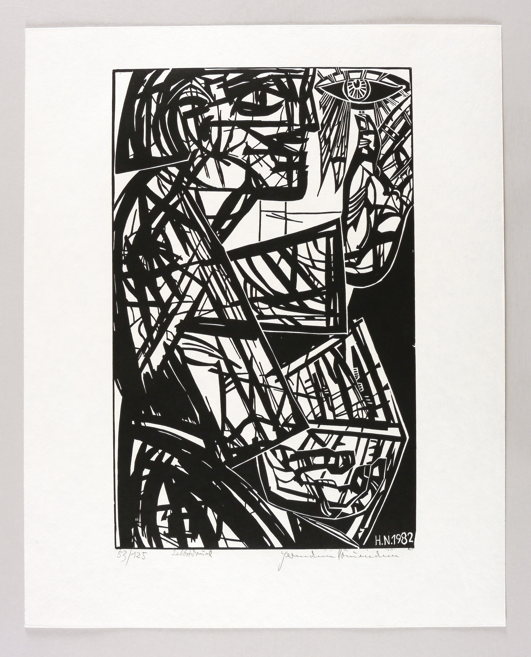 Rechts unten in Bleistift signiert: ″Hermann Naumann″. Links bezeichnet: ″53/125 Selbstdruck″. Im Holzstock rechts unten Signatur und Jahr: ″H.N. 1982″. – Handdruck des Künstlers. – Ohne Altersspuren. Sehr guter Zustand.