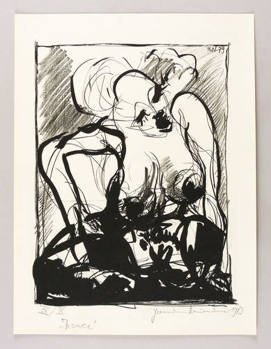 Rechts unten in Bleistift signiert und datiert: ″Hermann Naumann 1979″. Links unten eigenhändige Auflagenbezeichnung: ″IX/XI″. Dazu Titel: ″Trance″. Im Stein rechts oben nochmals Signatur und Jahr: ″!H.N. 79″. – Ohne Mangel. Sehr guter Zustand.