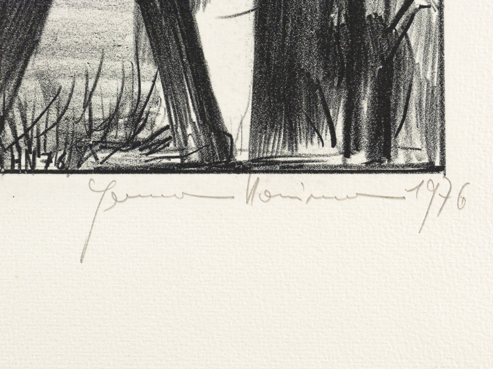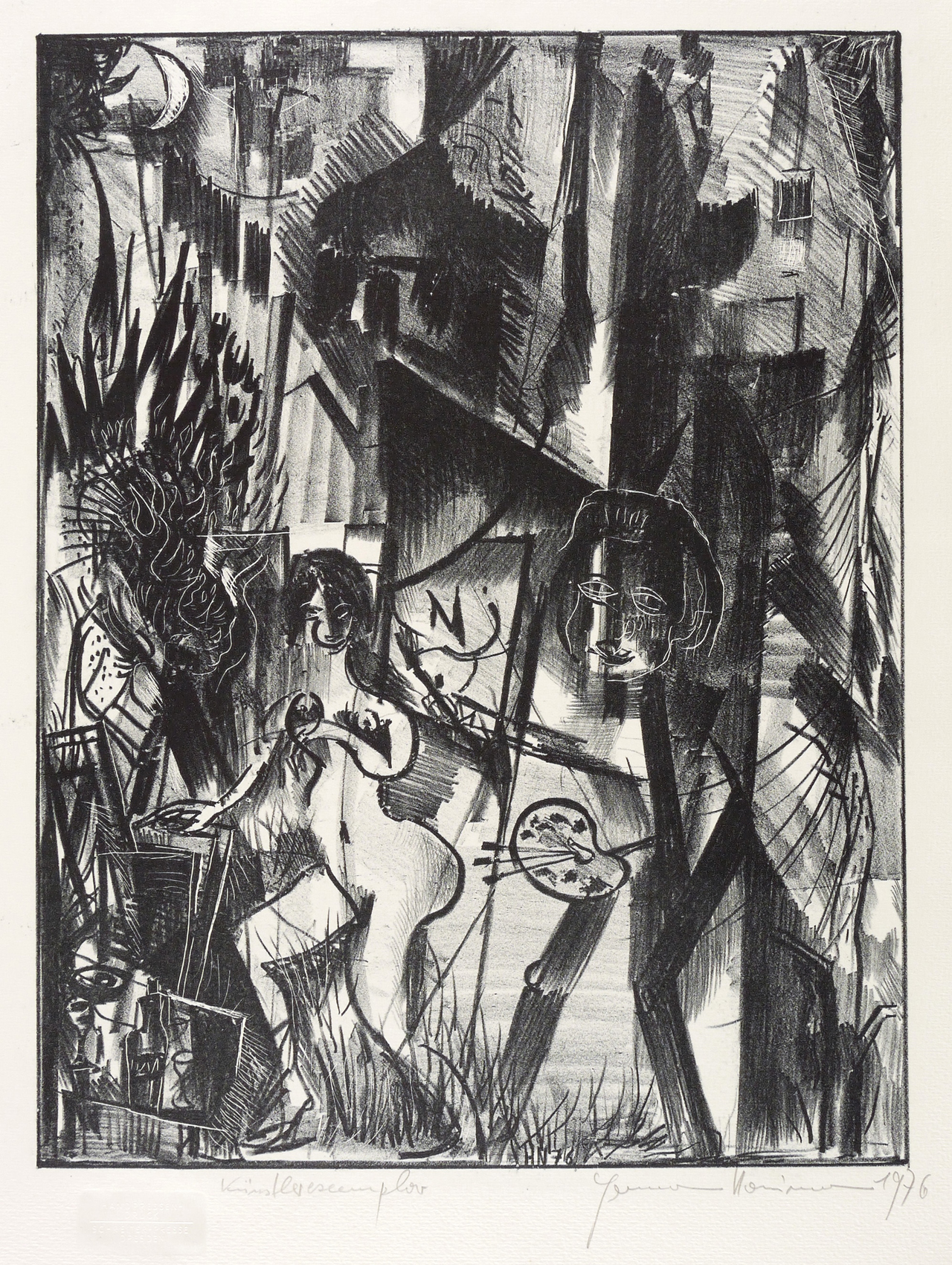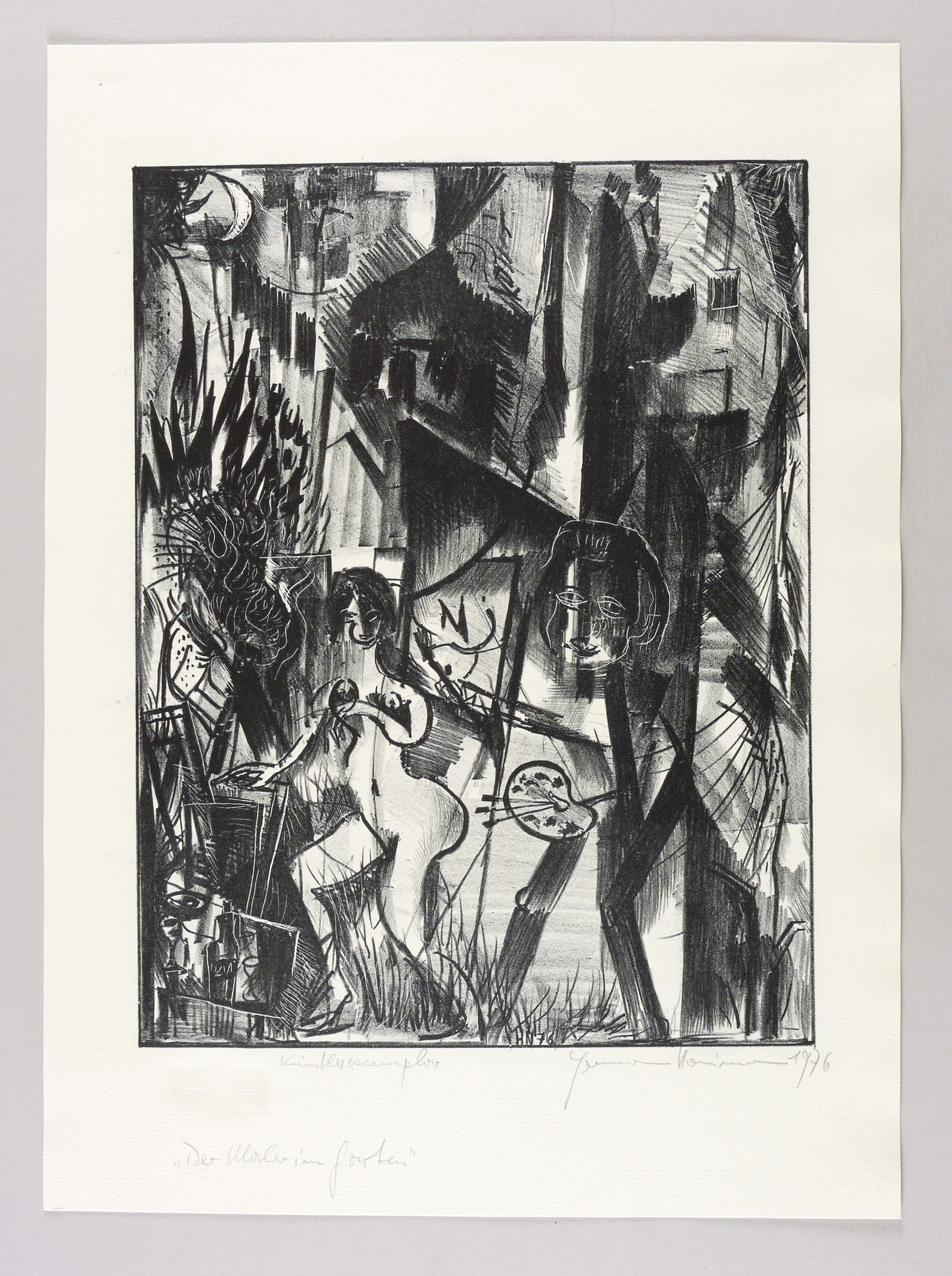 1976. Lithografie / Kreidelithografie, partiell geschabt, in Schwarz, auf hartem hellgelbem Velin. – Originale Künstlergrafik, von Hermann Naumann. – Künstlerexemplar (e.a.). – 43,2 x 33,1 cm (Darstellung / Druckbild), 58 x 42 cm (Blatt).