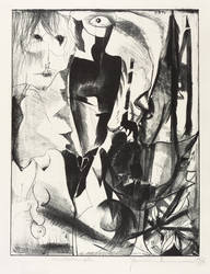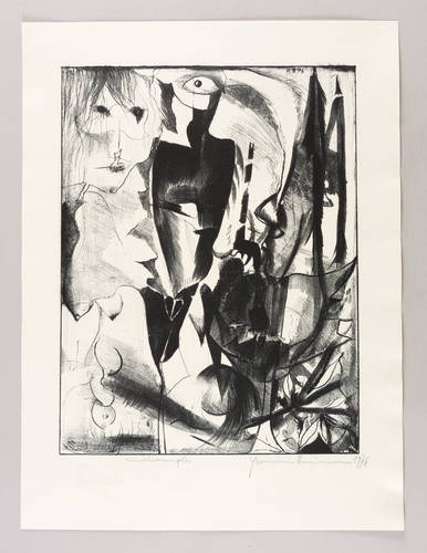 1976. Lithografie / Kreidelithografie, partiell geschabt, in Schwarz, auf hartem hellgelbem Velin. – Originale Künstlergrafik, von Hermann Naumann. – Künstlerexemplar (e.a.). – 42,6 x 32,8 cm (Darstellung / Druckbild), 56 x 42 cm (Blatt).