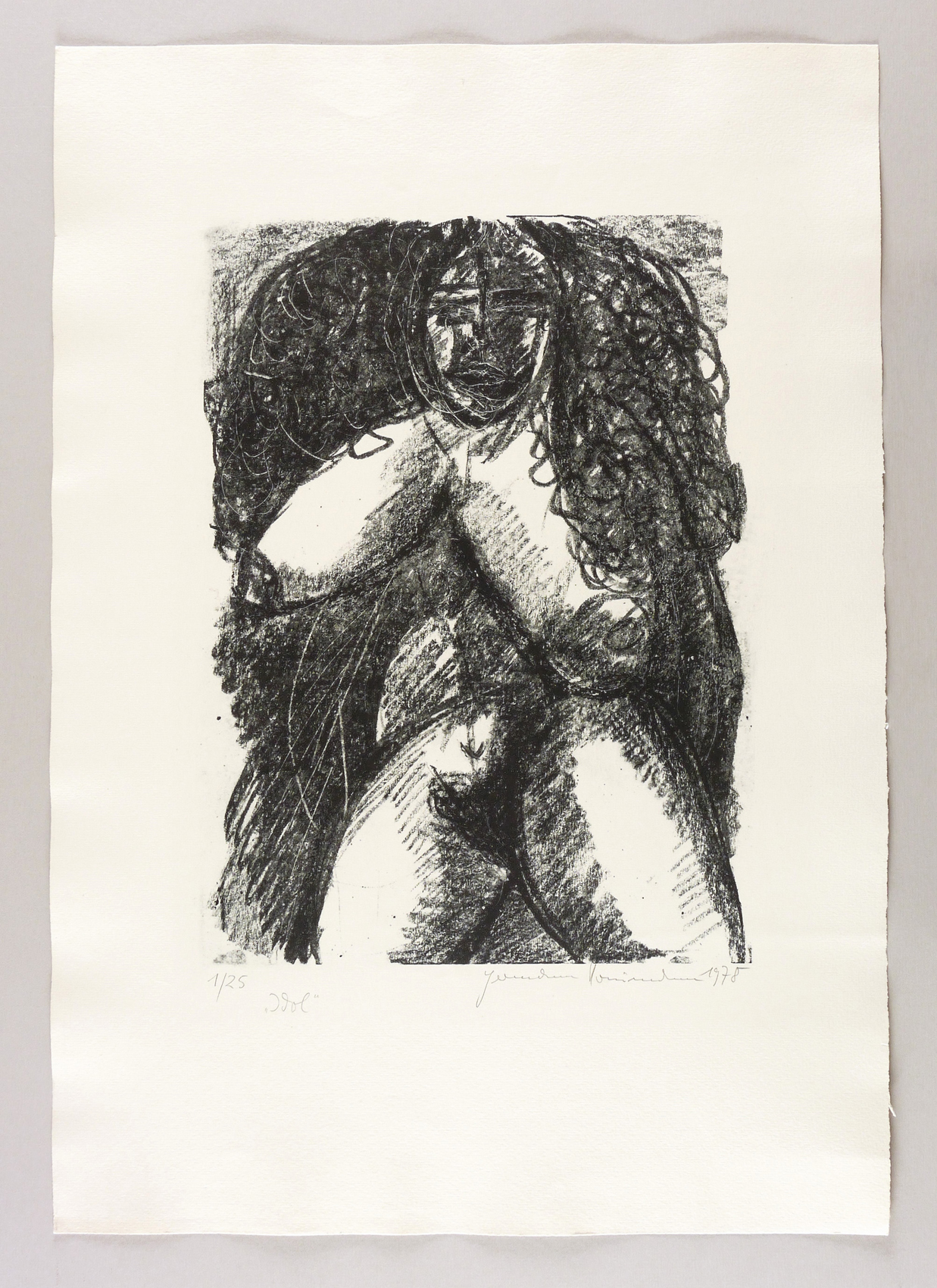 Rechts unten in Bleistift signiert und datiert: ″Hermann Naumann 1978″. Links Auflagenbezeichnung: ″1/25″. Darunter Titel: ″Idol″. – Minimal atelierspurig. Insgesamt guter Zustand.