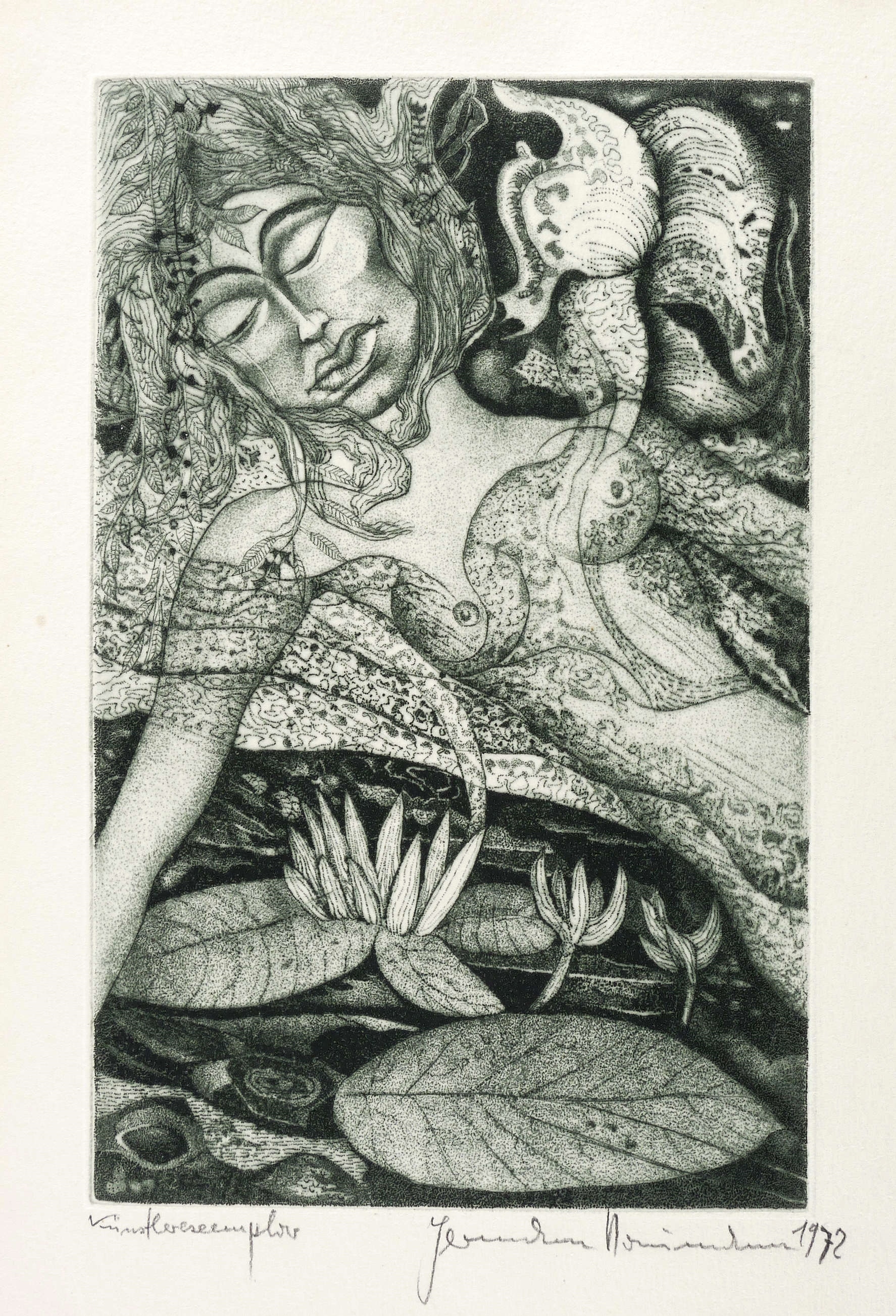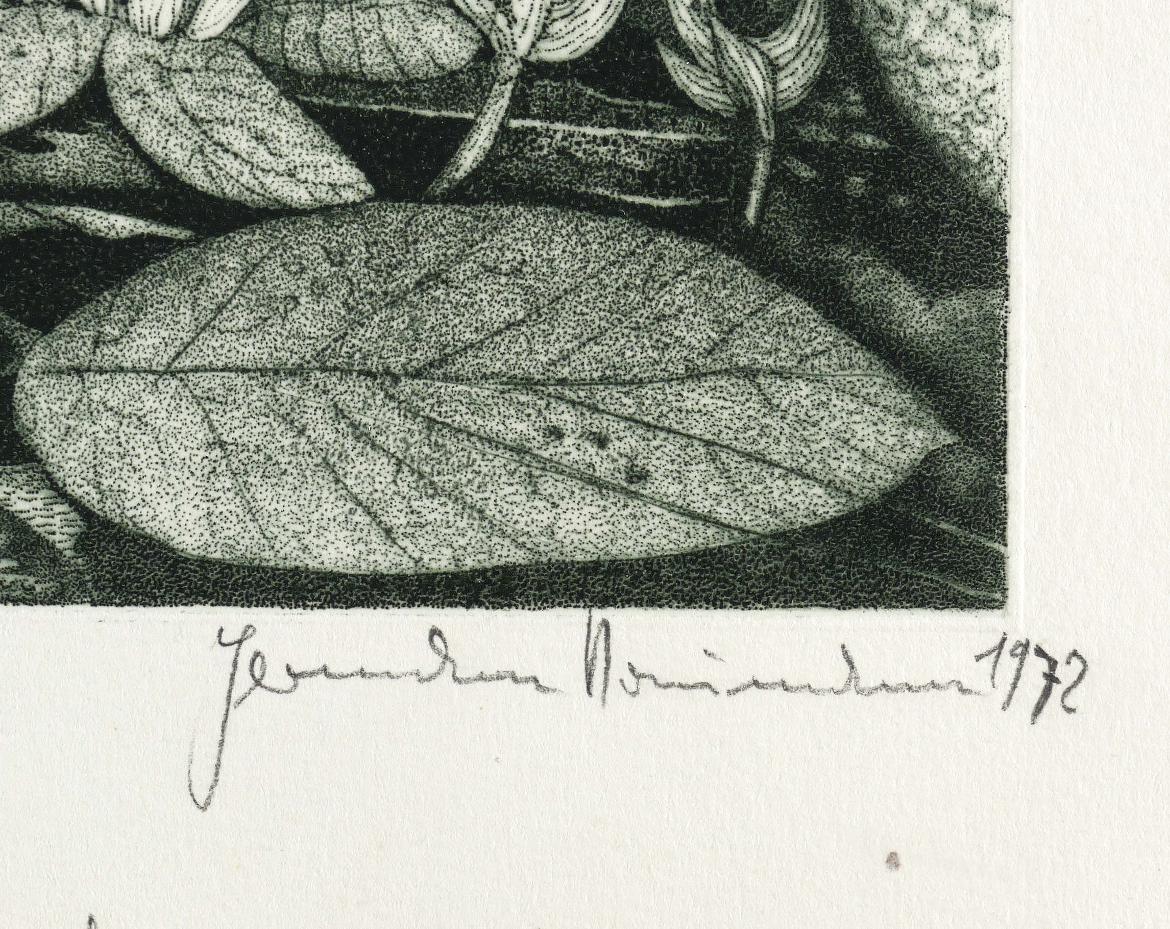 1972/1973. Kupferstich / Punzenstich, in Grünschwarz, auf hartem Weißenborn-Maschinenbütten. – Originale Künstlergrafik, von Hermann Naumann. – Künstlerexemplar (e.a.). – 23,3 x 14,8 cm (Darstellung / Platte), 31 x 20 cm (Blatt).