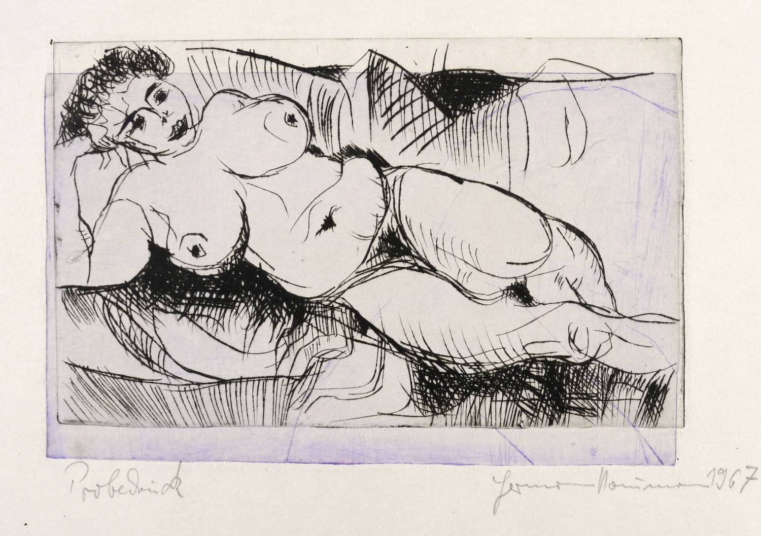 Rechts unten in Bleistift signiert und datiert: ″Hermann Naumann 1967″. Links bezeichnet: ″Probedruck″. – Papier mit leichten unmerklichen Altersspuren. Insgesamt guter Zustand.