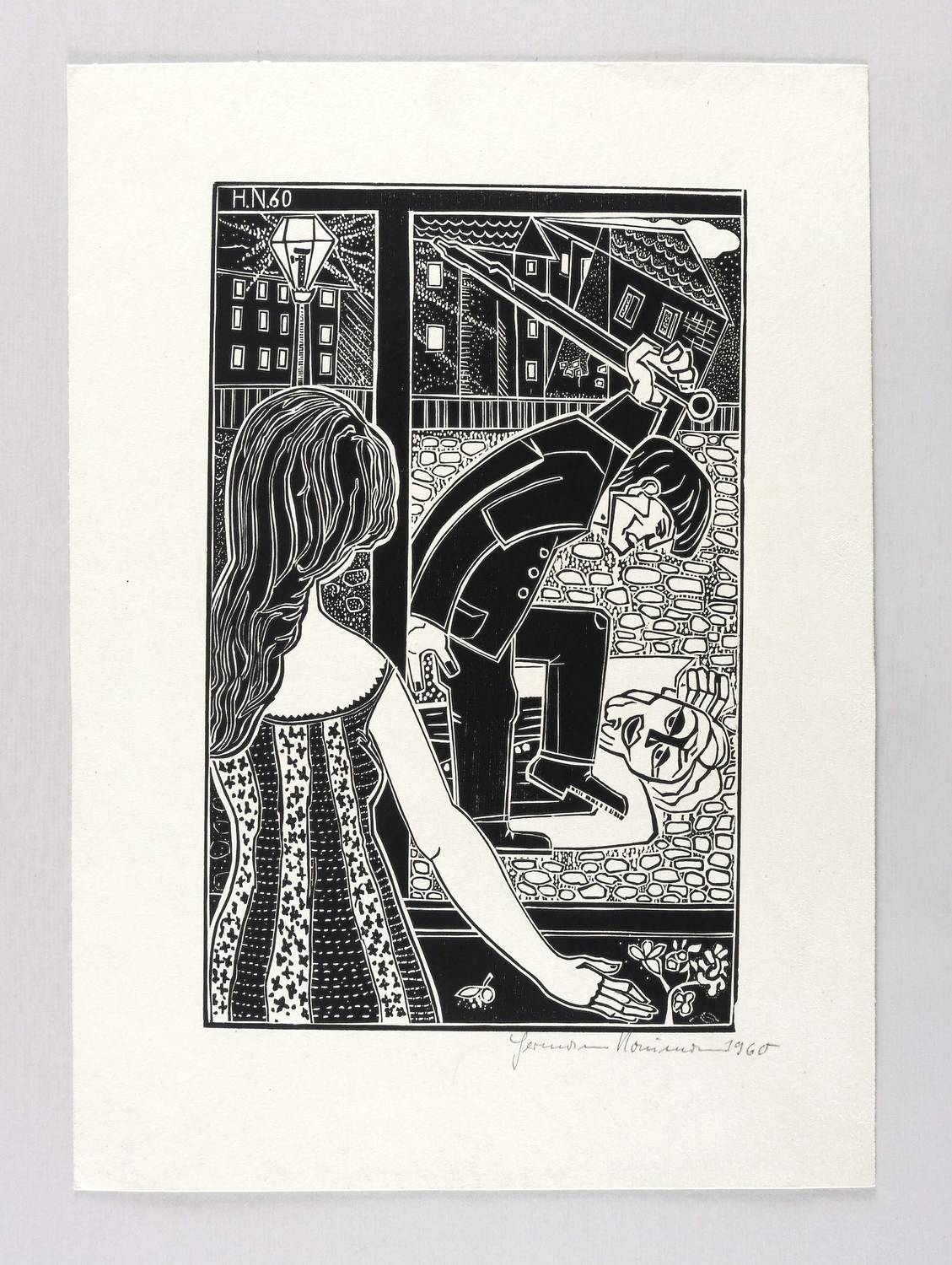 Rechts unten in Bleistift signiert und datiert: ″Hermann Naumann 1960″. Im Druckstockrand oben links Signatur und Jahr: ″H.N. 60″. – Guter Zustand.