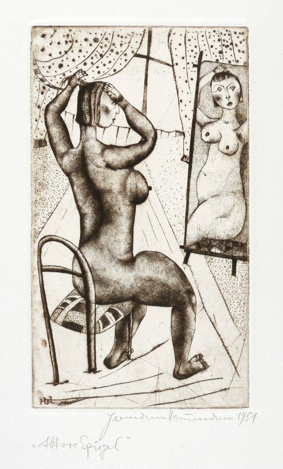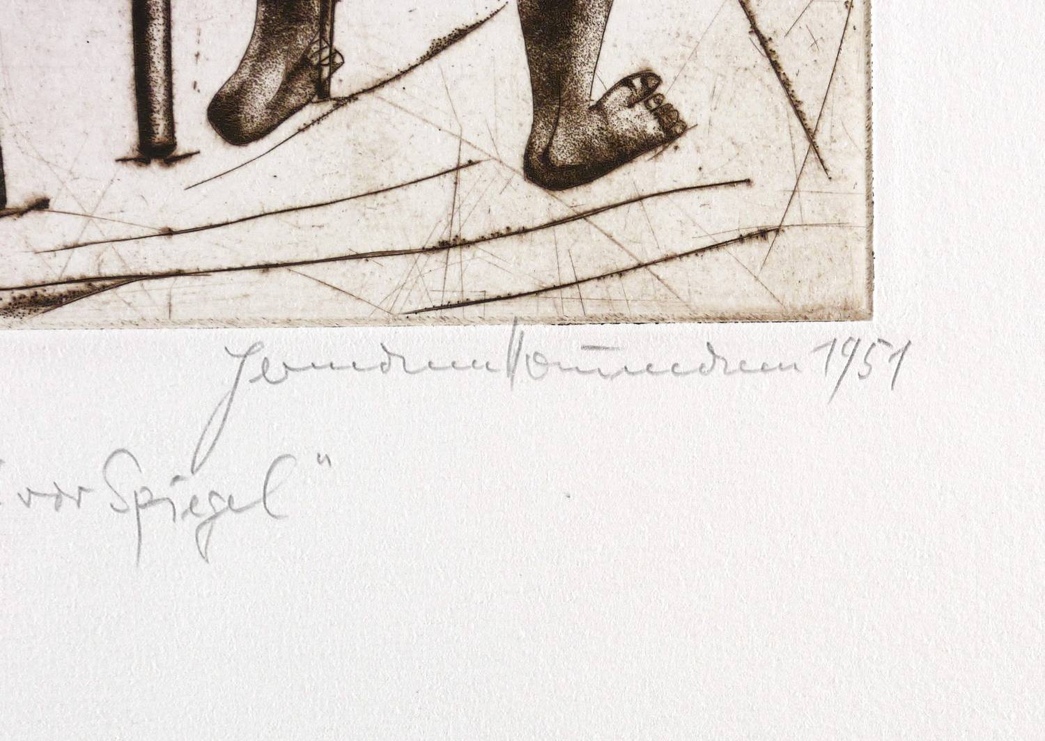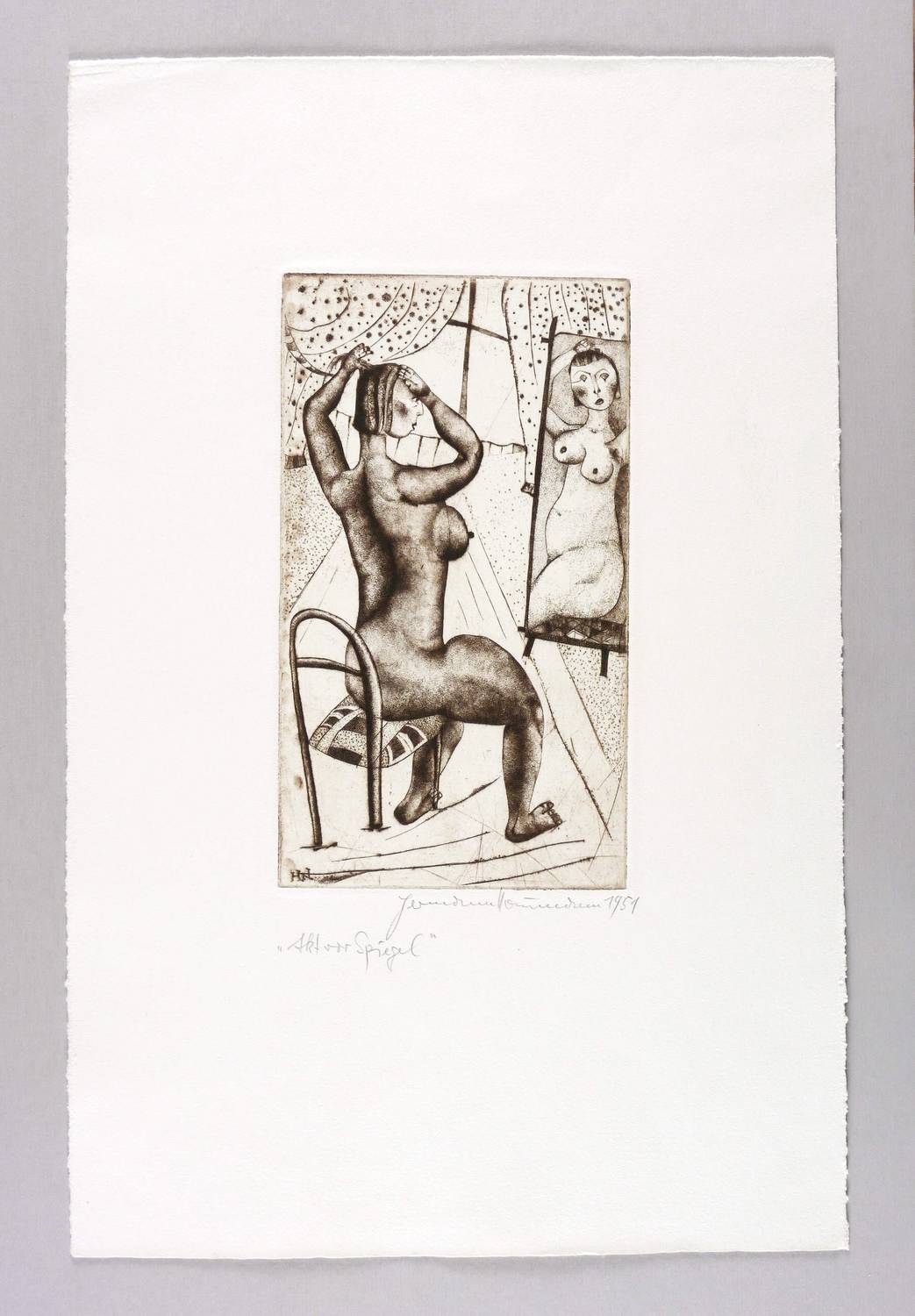 Rechts unten in Bleistift signiert und datiert: ″Hermann Naumann 1951″. Links Titel. In der Platte links unten Signatur: ″H.N.″ – Außergewöhnlich schönes Blatt. - Selten. – Kaum merkliche Lagerspuren. Guter Zustand.