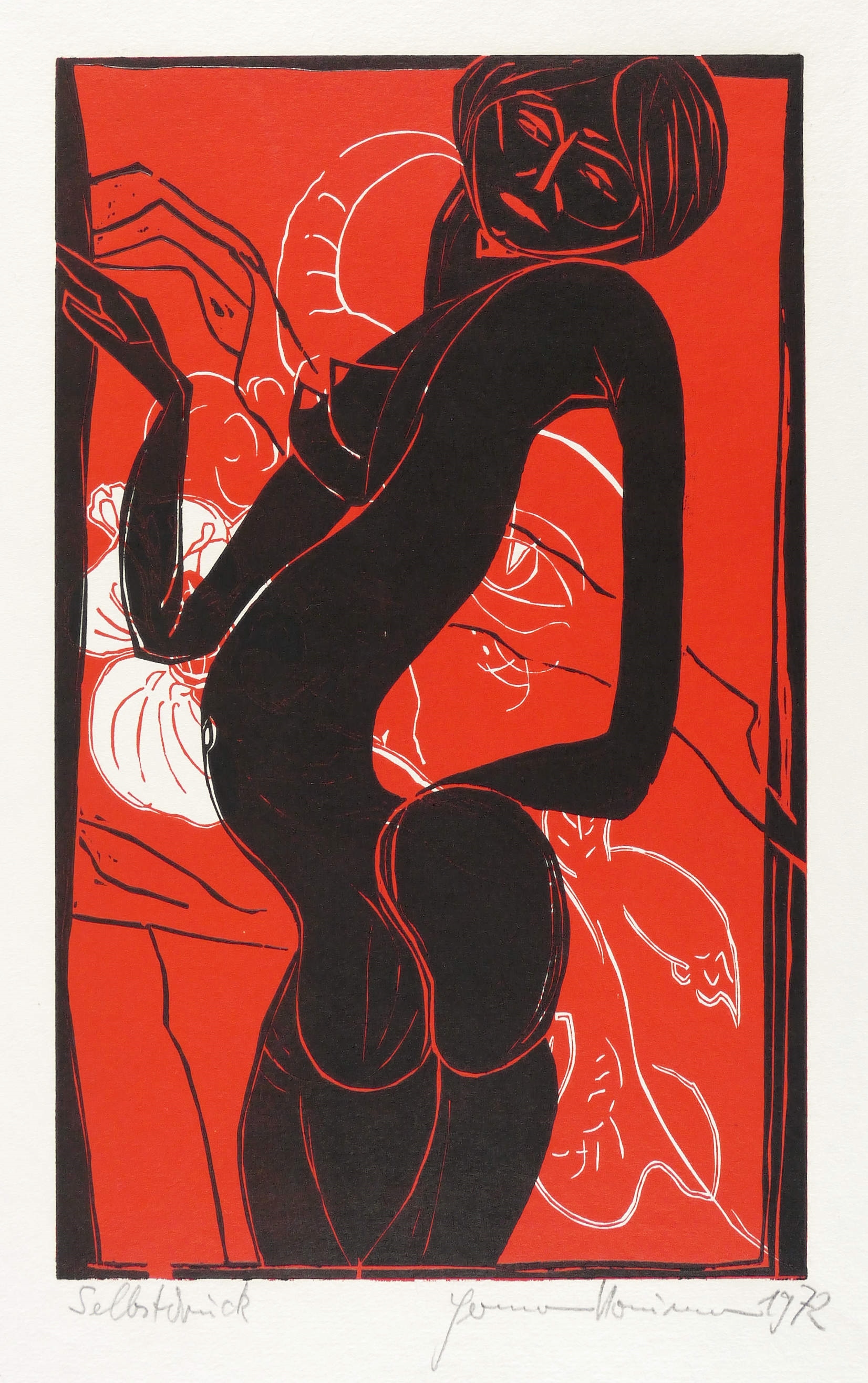 1972. Farbholzschnitt, in Rot & Schwarz, auf weichem gelblichem Velin. – Originale Künstlergrafik, von Hermann Naumann. – 40,1 x 24,8 cm (Darstellung / Druckstock), 63 x 41 cm (Blatt).