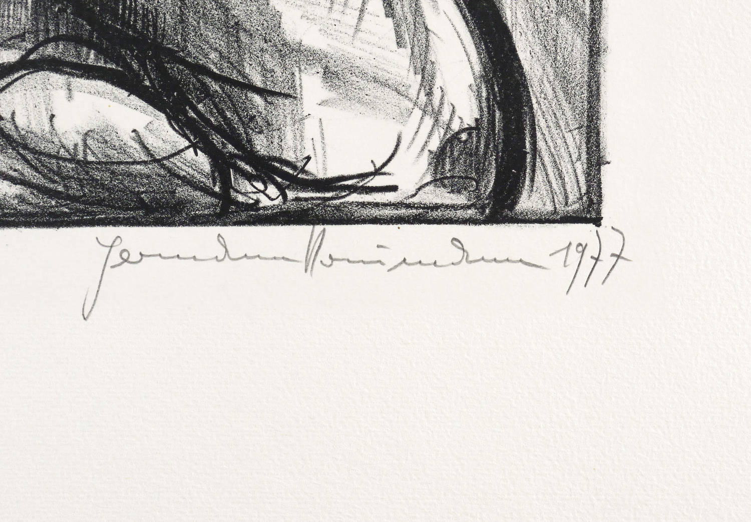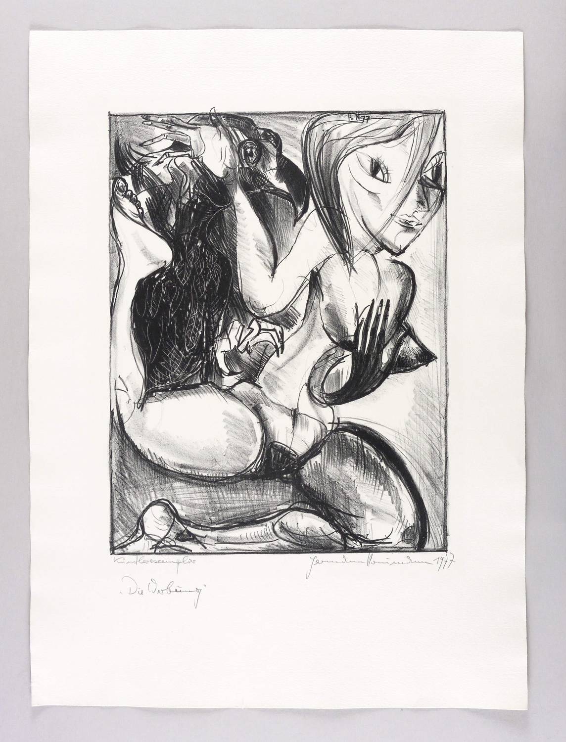 1977. Lithografie / Kreidelithografie, partiell geschabt, in Schwarz, auf hartem hellchamois Velin. – Originale Künstlergrafik, von Hermann Naumann. – Künstlerexemplar (e.a.). – 64 x 48 cm (Blatt), 42,5 x 32,5 cm (Darstellung / Druckbild).
