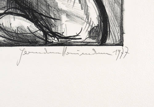 Rechts unten in Bleistift signiert und datiert: ″Hermann Naumann 1977″. Links eigenhändige Auflagenbezeichnung. Darunter Titel. Im Stein rechts oben nochmals Signatur und Jahr: ″H.N. 77″. – Unbeschnittenes Exemplar. Tadellos. Sehr guter Zustand.