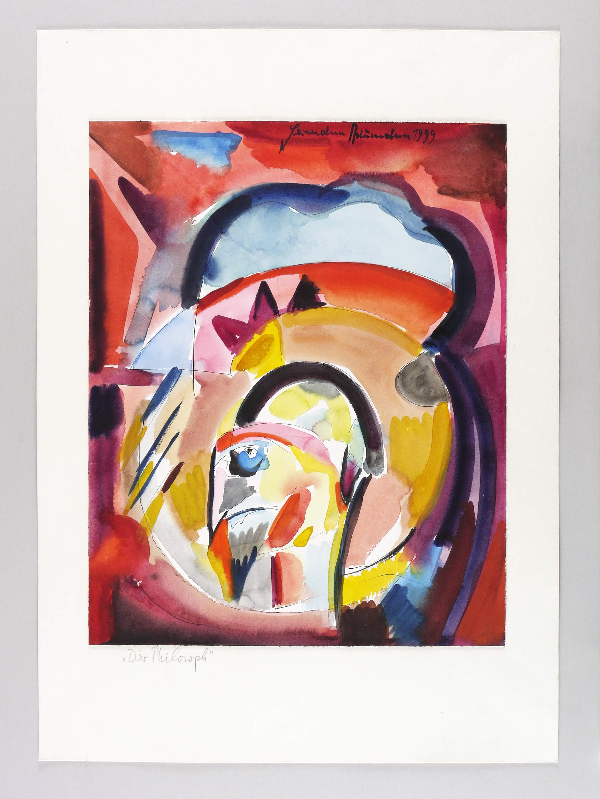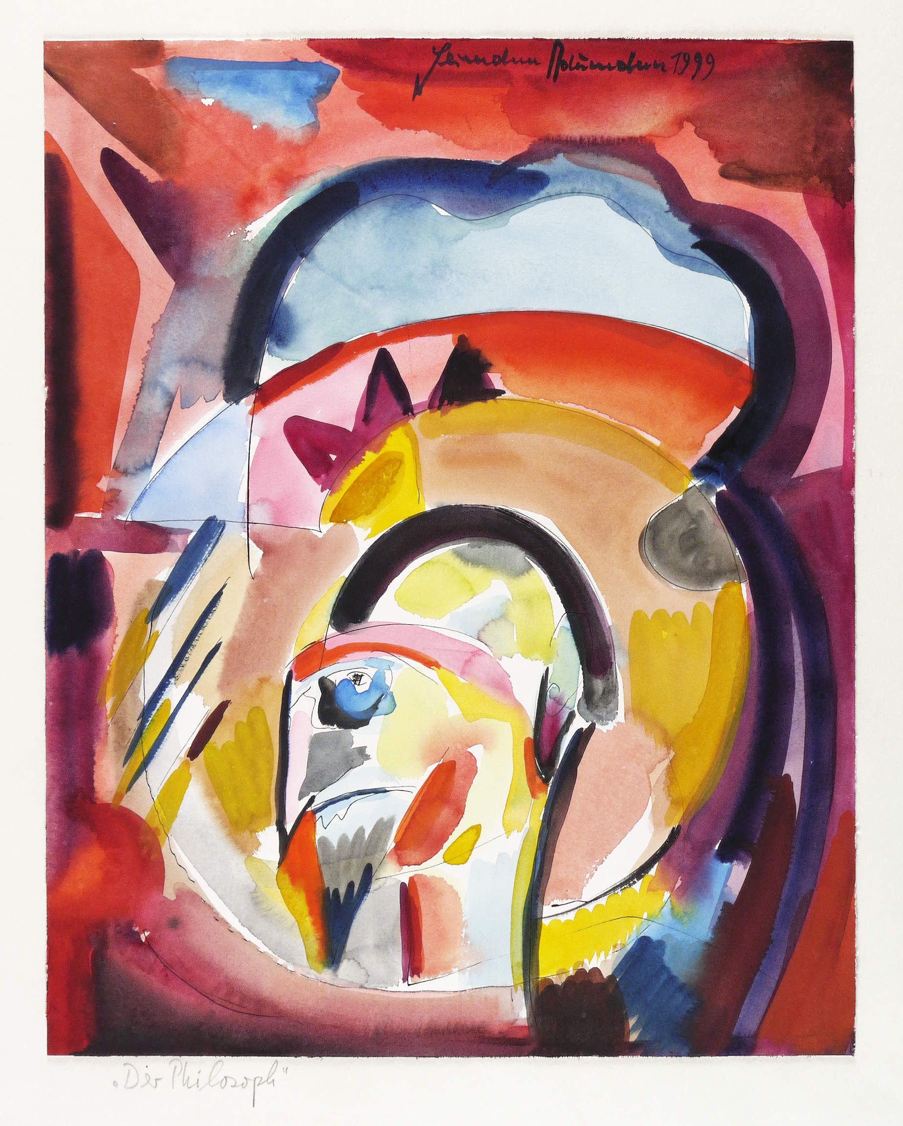 Rechts oben im Rand in schwarzer Tusche signiert und datiert: ″Hermann Naumann 1999″. Auf dem Trägerkarton links utnen betitelt: ″Der Philosoph″. – Tadelos. Sehr guter Zustand.