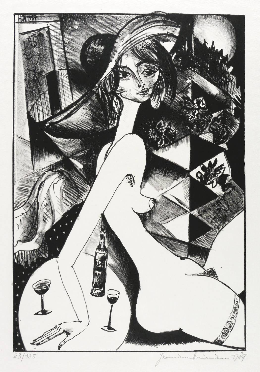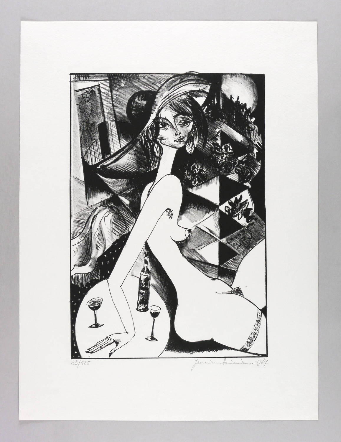 1987. Lithografie / Kreide- & Pinsellithografie, in Schwarz, auf hellchamois Velinkarton. – Originale Künstlergrafik, von Hermann Naumann. – Auflage Exemplar Nr. 23/125. – 47,8 x 32,8 cm (Darstellung / Druckbild), 67 x 50 cm (Blatt).