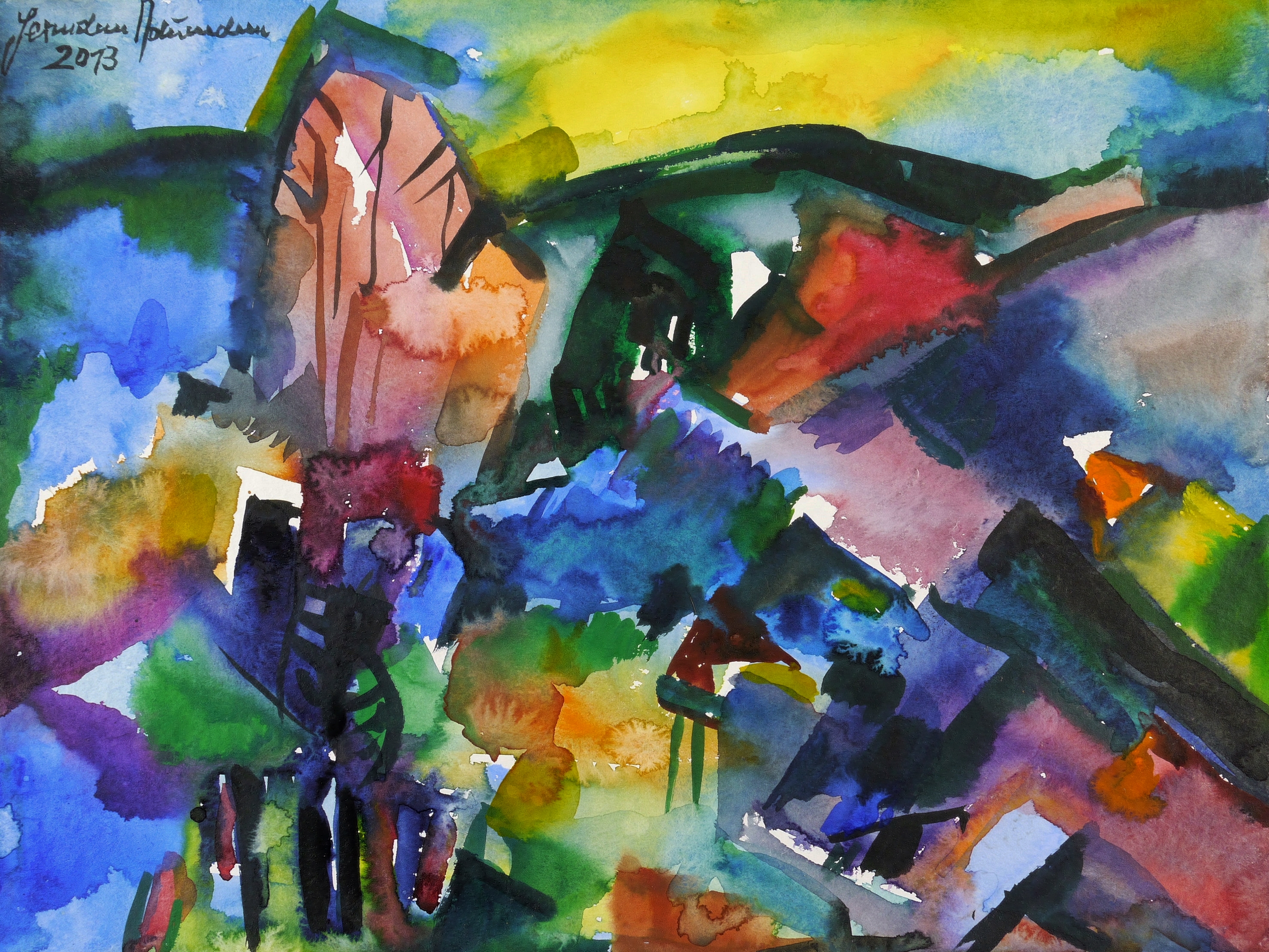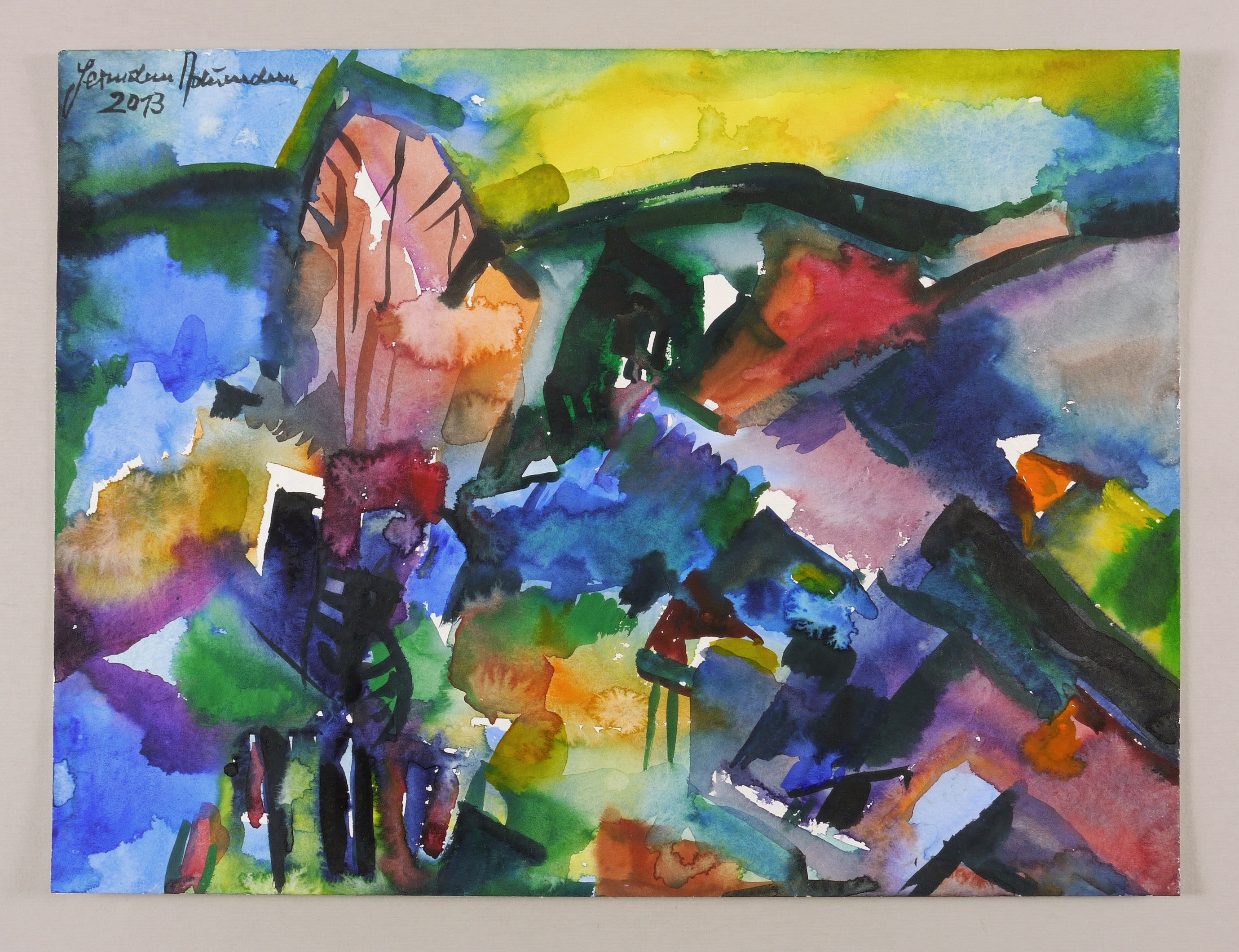 2013. Aquarell, auf festem hellchamois Aquarellkarton. – Originale Künstlergrafik, von Hermann Naumann. – Unikat. – 36,1 x 48,0 cm (Darstellung / Blatt).