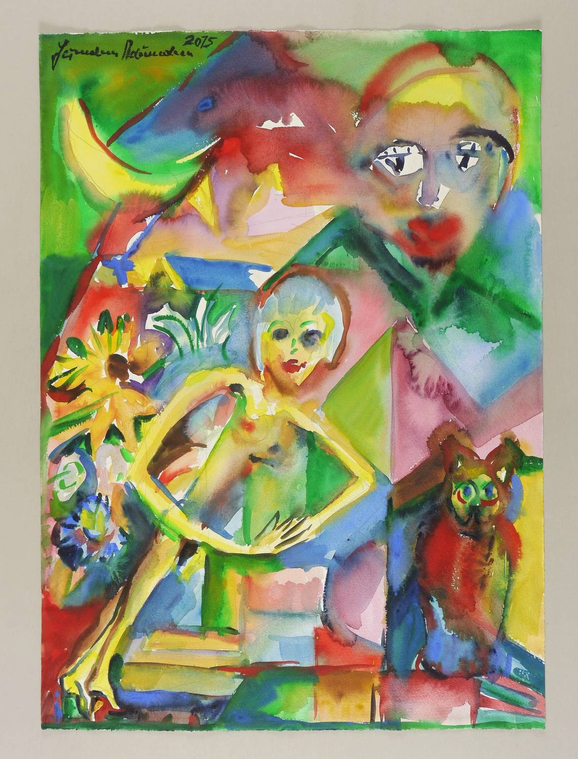 2015. Aquarell, auf festem hellchamois Hahnemühle-Aquarellkarton. – Originale Künstlergrafik, von Hermann Naumann. – Unikat. – 65,7 x 47,4 cm (Darstellung / Blatt).