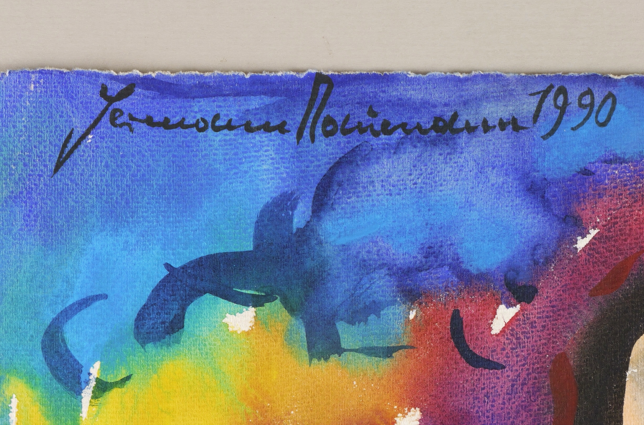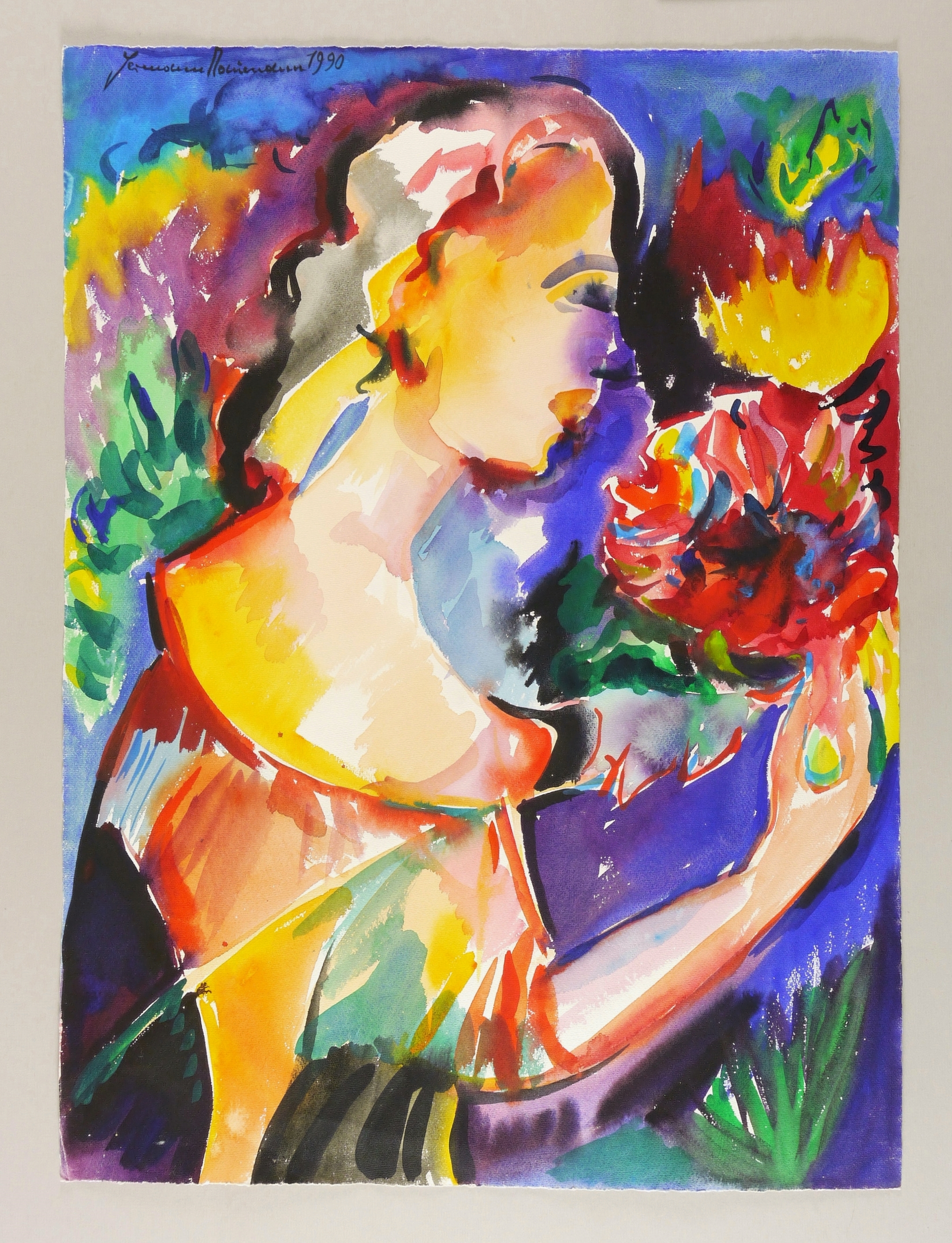 1990. Aquarell, auf hellchamois Hahnemühle-Velinkarton. – Originale Künstlergrafik, von Hermann Naumann. – Unikat. – 74,8 x 55,2 cm (Darstellung / Blatt).