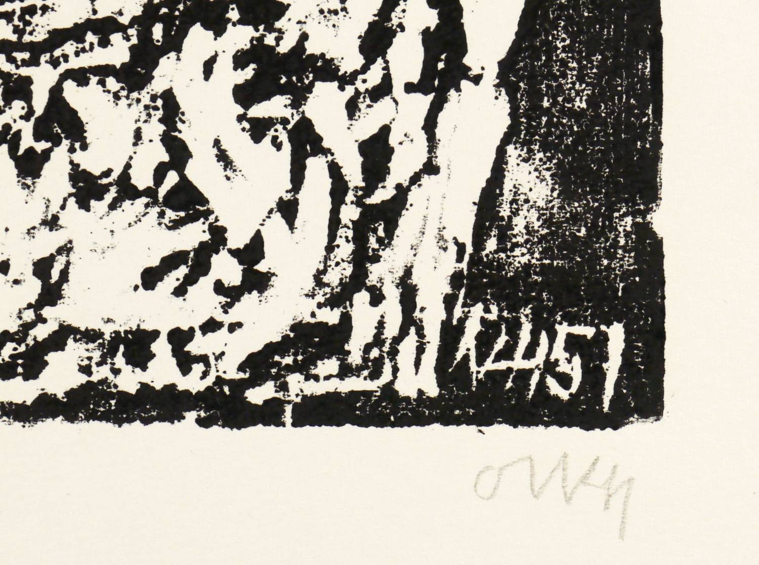 1957. Holzschnitt, in Schwarz, auf hellchamois Weißenborn. – Originale Künstlergrafik, von Otto Niemeyer-Holstein. – Auflage Exemplar Nr. 39/100. – 40,4 x 32,2 cm (Darstellung / Platte), 63 x 46 cm (Blatt).