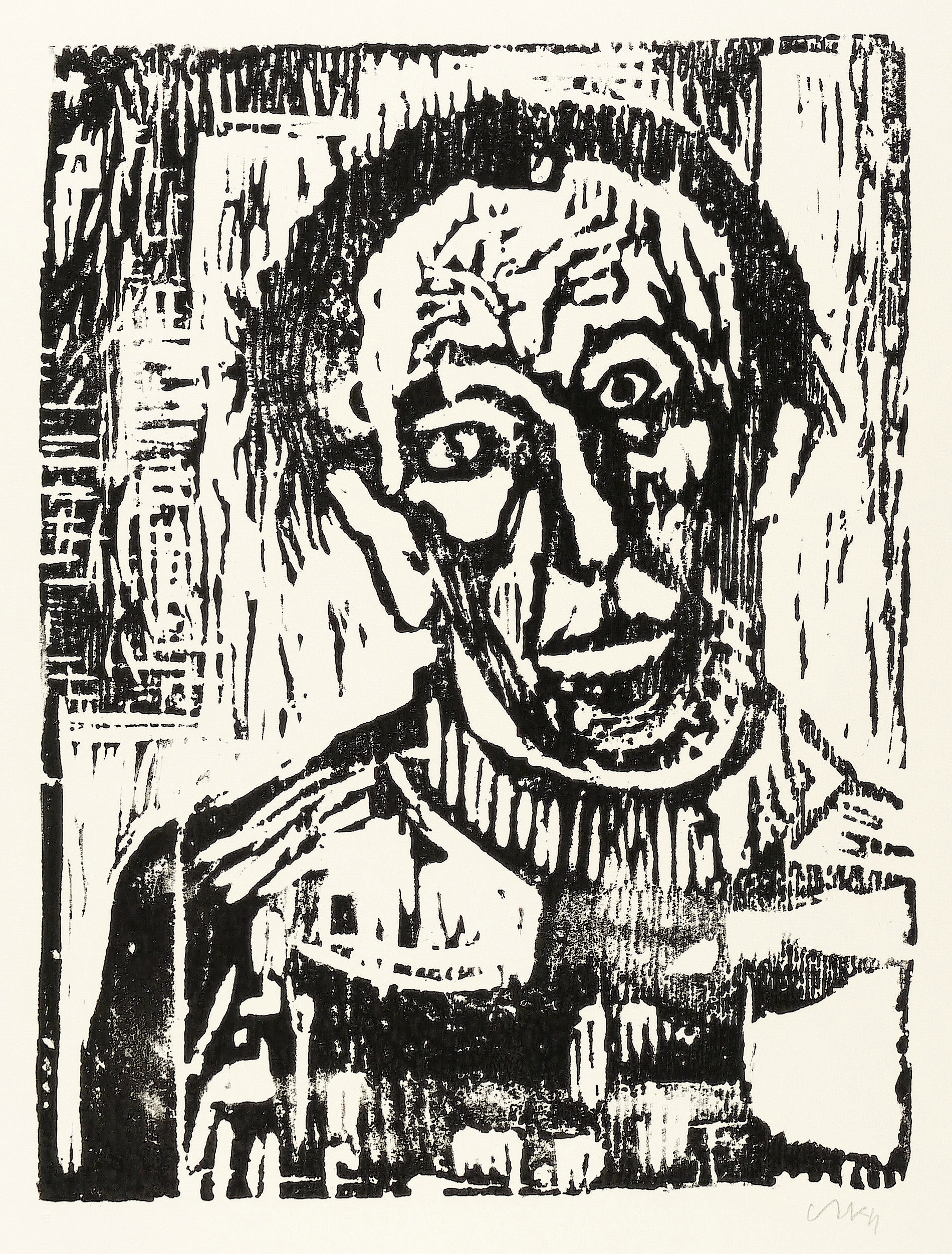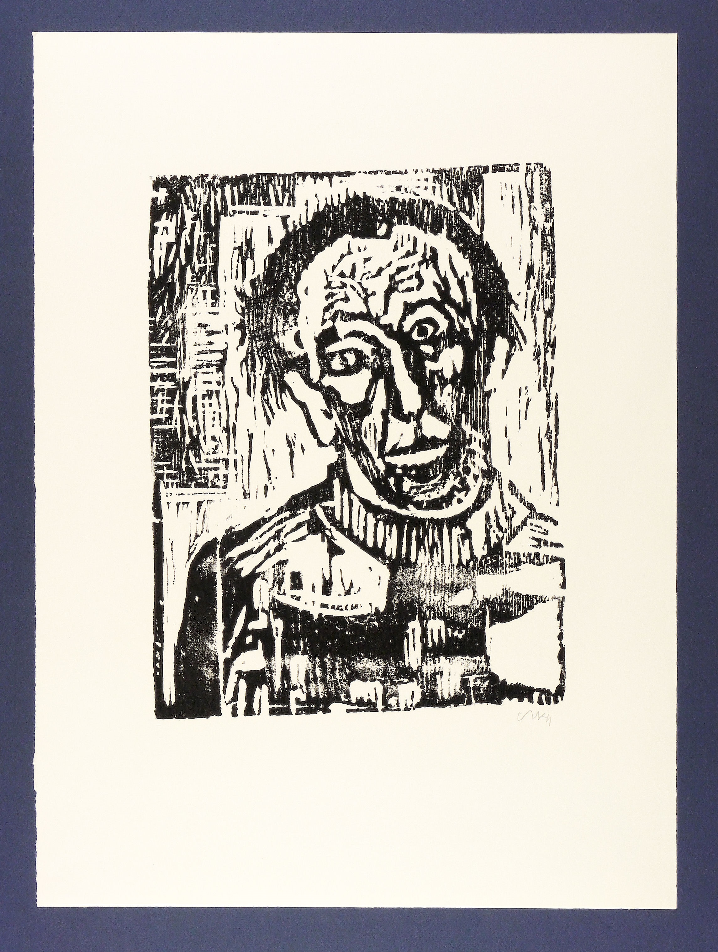 1957. Holzschnitt, in Schwarz, auf hellchamois Weißenborn. – Originale Künstlergrafik, von Otto Niemeyer-Holstein. – Auflage Exemplar Nr. 39/100. – 38,9 x 29,4 cm (Darstellung / Platte), 63 x 46 cm (Blatt).