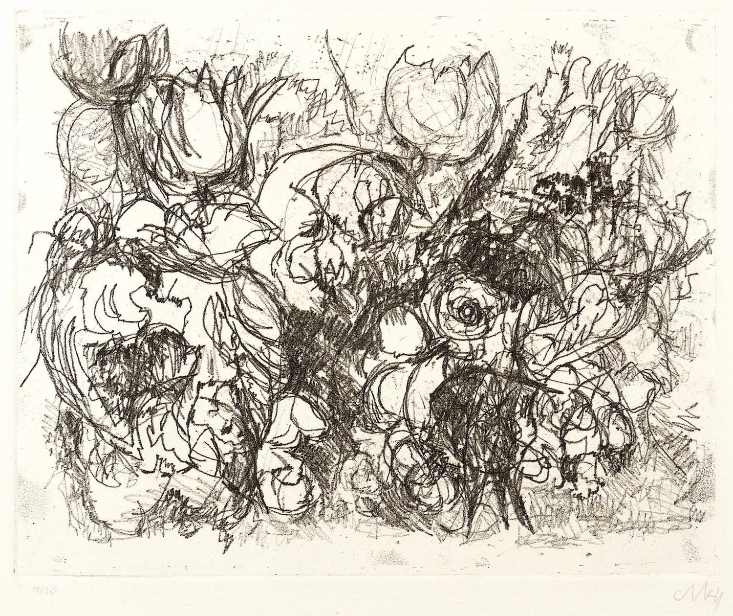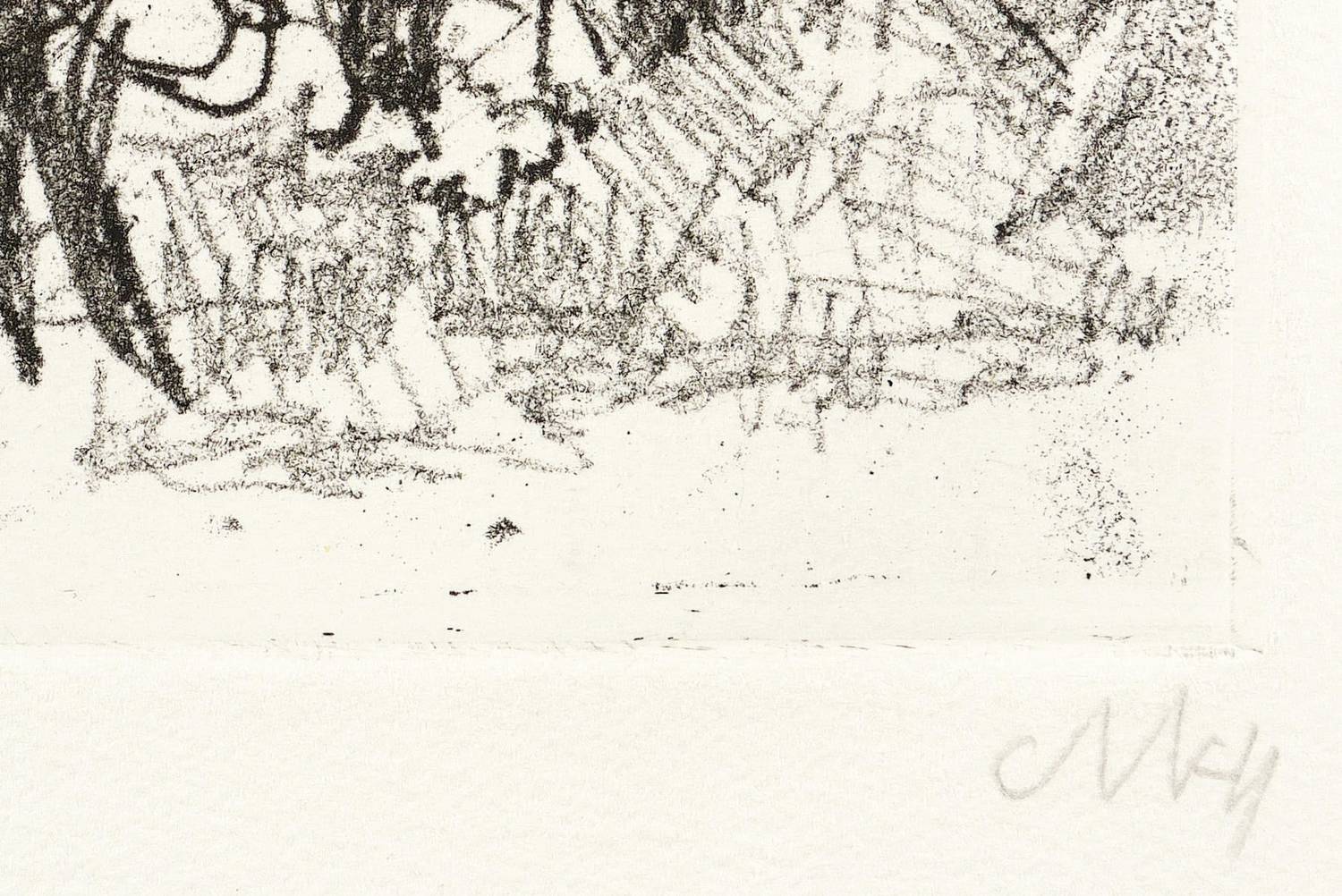1983. Radierung / Vernis mou, in Schwarz, auf hellchamois Hahnemühle. – Originale Künstlergrafik, von Otto Niemeyer-Holstein. – Auflage Exemplar Nr. 14/30. – 24,4 x 30,2 cm (Darstellung / Platte), 39,5 x 56 cm (Blatt).