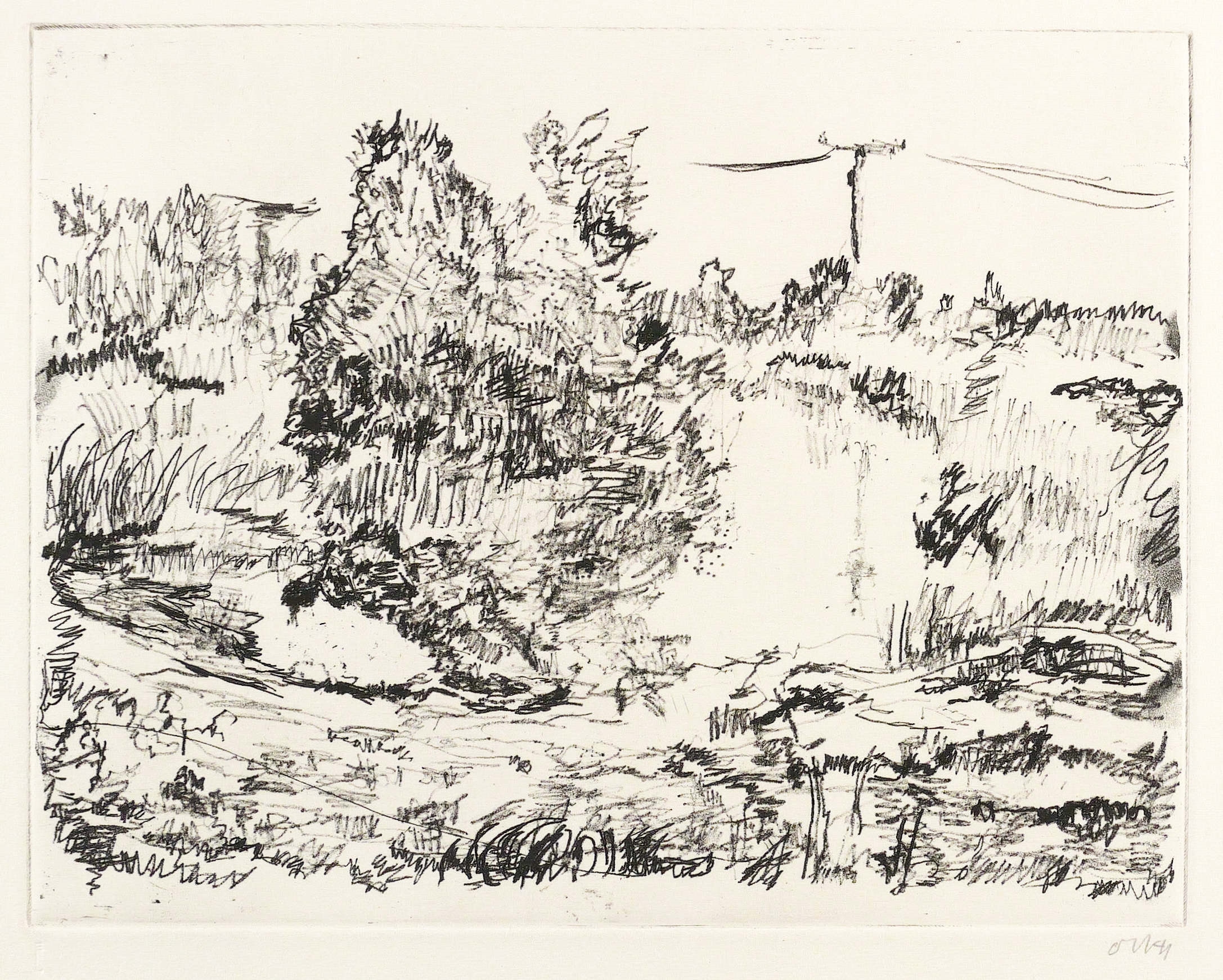 1983. Radierung / Vernis mou, in Schwarz, auf weißlichem schwerem Büttenpapier. – Originale Künstlergrafik, von Otto Niemeyer-Holstein. – 24,8 x 31,9 cm (Darstellung / Platte), 40 x 56 cm (Blatt).