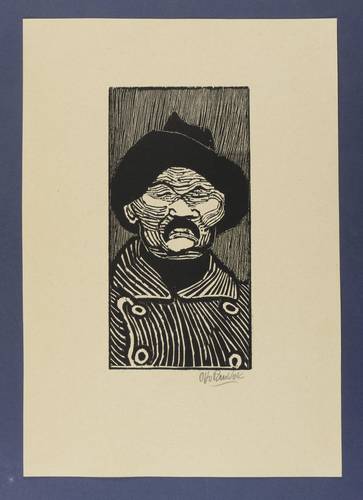Otto Pankok (1893 Mülheim an der Ruhr - 1966 Wesel). Deutscher Maler, Grafiker und Bildhauer. 1913 Studium an der Kunstakademie Düsseldorf und der Großherzoglich-Sächsischen Hochschule für bildende Kunst in Weimar. Nach Abbruch des Studiums ging er mit seinem Freund Carl Lohse nach Dötlingen. 1914-17 als Soldat im Ersten Weltkrieg. Ab 1919 in Düsseldorf, wo er der Künstlergruppe "Junges Rheinland" beitrat, zu der auch Otto Dix zählte. In dieser Zeit war er ebenfalls im rebellischen Künstlerkreis um Johanna Ey aktiv. Reisen in die Niederlande, Italien, Frankreich und Spanien. Auf den Nationalsozialismus reagierte er mit innerer Emigration. 1937 Beschlagnahmung einiger seiner Werke und Diffamierung als "Entarteter Künstler". Nach Kriegsende Berufung zum Professor an der Akademie Düsseldorf. Bis 1958 unterrichtete er u.a. Günter Grass, Herbert Zangs und Werner Persy.