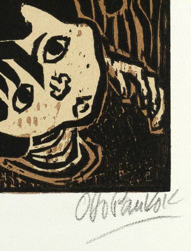 Otto Pankok (1893 Mülheim an der Ruhr - 1966 Wesel). Deutscher Maler, Grafiker und Bildhauer. 1913 Studium an der Kunstakademie Düsseldorf und der Großherzoglich-Sächsischen Hochschule für bildende Kunst in Weimar. Nach Abbruch des Studiums ging er mit seinem Freund Carl Lohse nach Dötlingen. 1914-17 als Soldat im Ersten Weltkrieg. Ab 1919 in Düsseldorf, wo er der Künstlergruppe "Junges Rheinland" beitrat, zu der auch Otto Dix zählte. In dieser Zeit war er ebenfalls im rebellischen Künstlerkreis um Johanna Ey aktiv. Reisen in die Niederlande, Italien, Frankreich und Spanien. Auf den Nationalsozialismus reagierte er mit innerer Emigration. 1937 Beschlagnahmung einiger seiner Werke und Diffamierung als "Entarteter Künstler". Nach Kriegsende Berufung zum Professor an der Akademie Düsseldorf. Bis 1958 unterrichtete er u.a. Günter Grass, Herbert Zangs und Werner Persy.