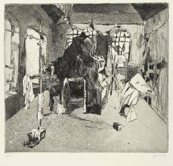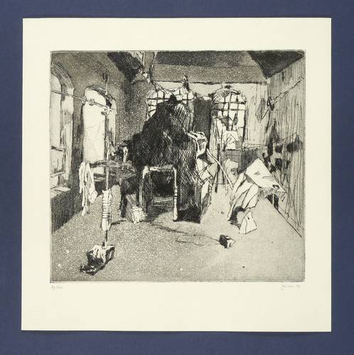 1987. Radierung / Strichätzung & Aquatinta, in Schwarz, auf hellchamois Velin. – Originale Künstlergrafik, von Christine Perthen. – Auflage Exemplar Nr. 87/200. – 26,5 x 29,0 cm (Darstellung / Platte), 36 x 36 cm (Blatt).