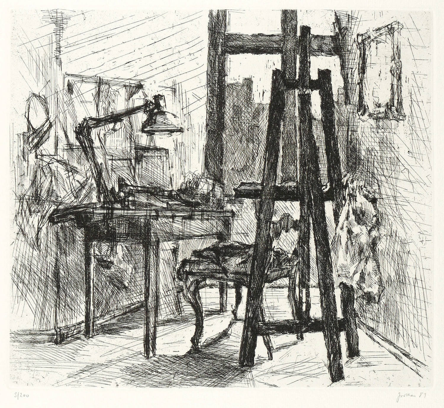 1981. Radierung / Strichätzung, in Schwarz, auf Weißenborn-Bütten. – Originale Künstlergrafik, von Christine Perthen. – Auflage Exemplar Nr. 3/200. – 23,5 x 26,3 cm (Darstellung / Platte), 36 x 33 cm (Blatt).