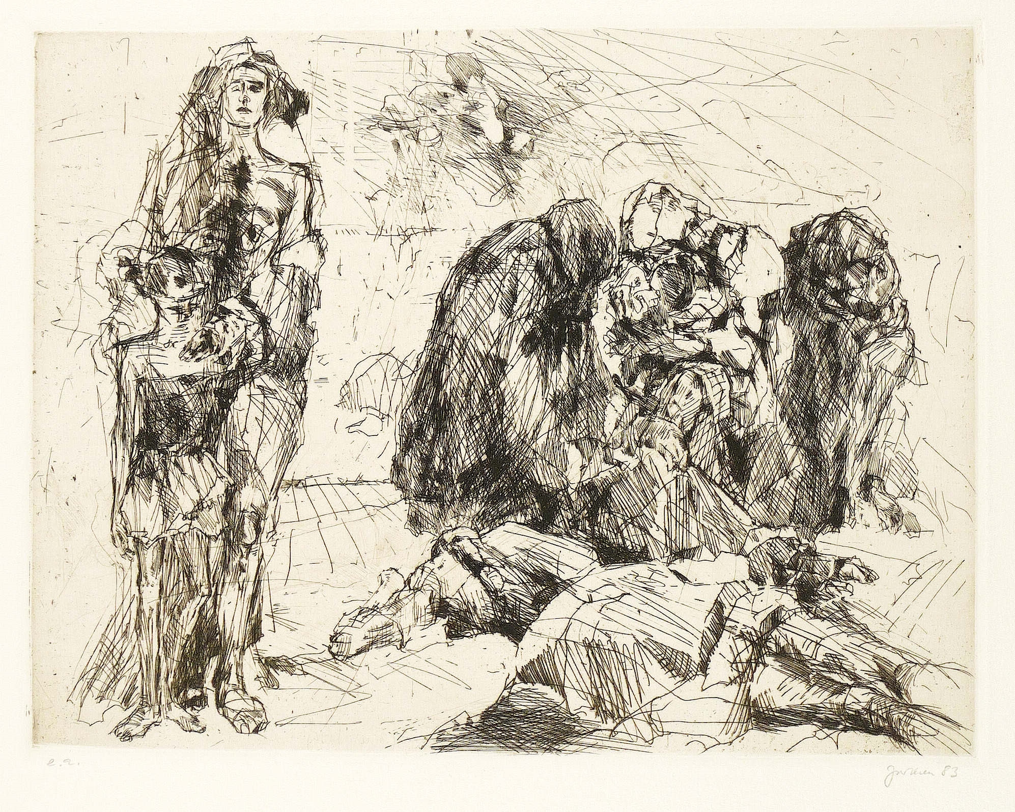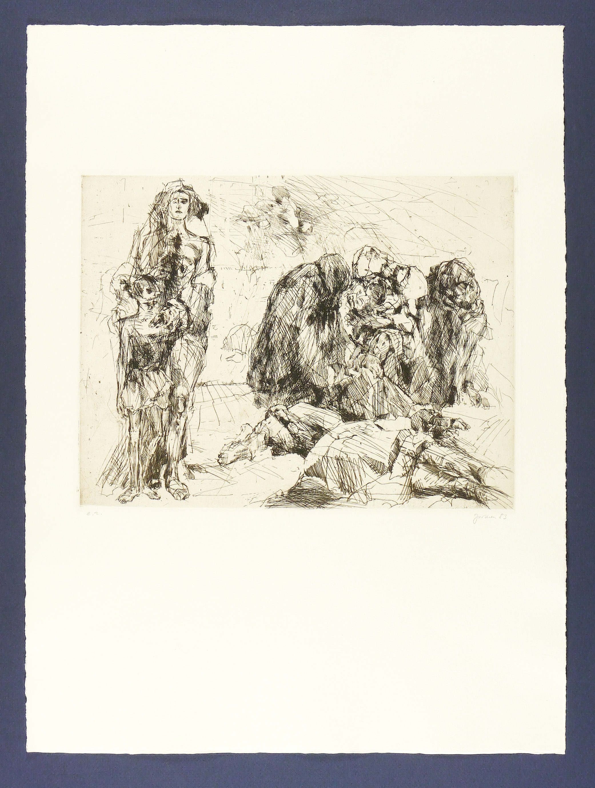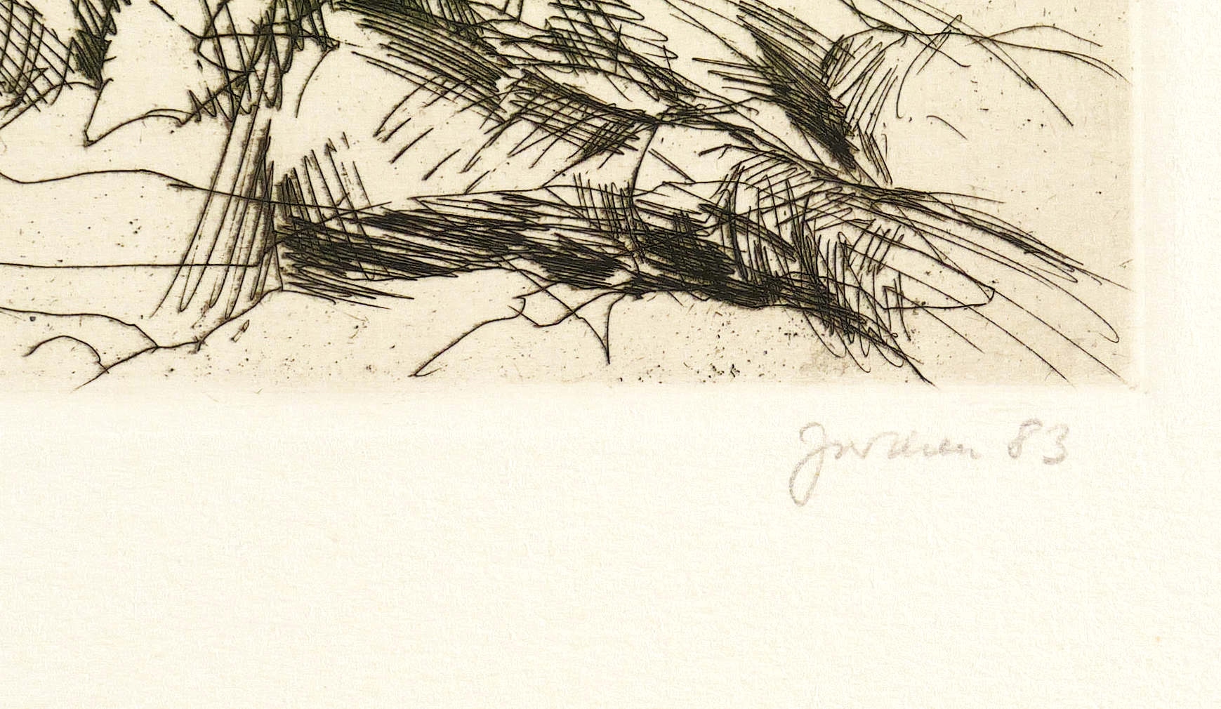 1983. Radierung / Strichätzung, mit Plattenton, auf hellem schwerem Büttenpapier. – Originale Künstlergrafik, von Christine Perthen. – Künstlerexemplar (e.a.). – 24,5 x 31,9 cm (Darstellung / Druckbild), 25,3 x 32,6 cm (Platte), 53,5 x 39,5 cm (Blatt).