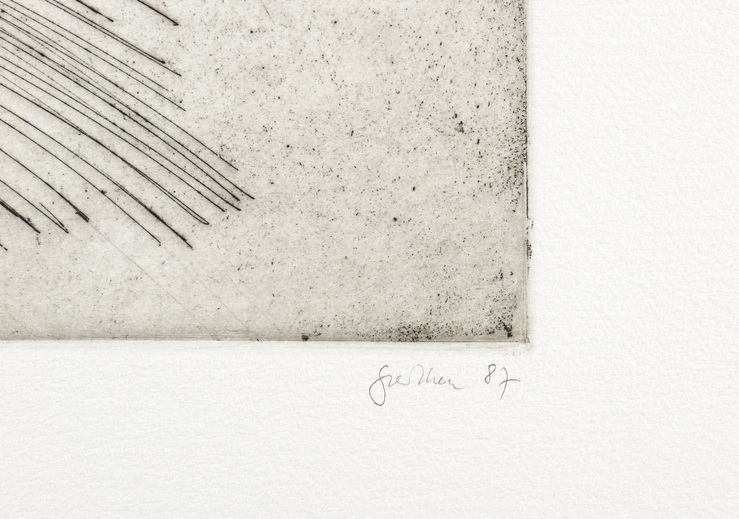 Rechts unten in Bleistift signiert und datiert: ″Perthen 87″. Links Auflagenbezeichnung und Widmung. In der Platte links unten Titel, Signatur und Jahr. Wasserzeichen. – Ohne Mängel. Frisch und kontrastreich. Sehr guter Zustand.