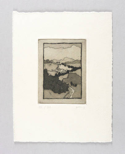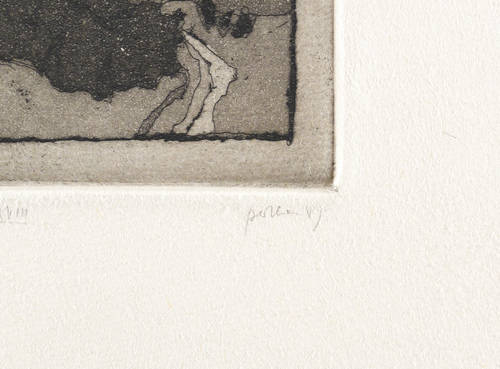 1989. Radierung / Aquatinta & Strichätzung, in Schwarz, auf chamois Hahnemühle-Bütten. – Originale Künstlergrafik, von Christine Perthen. – Auflage Exemplar Nr. XIV/XVIII. – 10,1 x 7,5 cm (Darstellung / Platte), 20 x 15 cm (Blatt).
