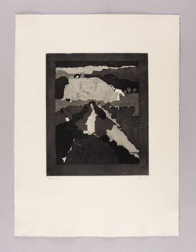 Degen C.2. Perthen. – Aus: Christine Perthen, Sieben Märkische Abendlandschaften. Zu einem Vers von Johannes Bobrowski (Berlin 1979). – Rechts unten in Bleistift signiert und datiert: ″Perthen 79″. Links eigenhändige Auflagenbezeichnung: ″Vorzugsdruck″. Wasserzeichen der Hahnemühle. – Blatt Nr. 6 aus dem Aquatinta-Zyklus ″Sieben Märkische Abendlandschaften (zu einem Vers von Johannes Bobrowski)″ von 1979 (Verzeichnis: Andreas Degen, Johannes- Bobrowski-Bibliografie, Abt. C.2). – Ohne Mängel. Sehr guter Zustand.
