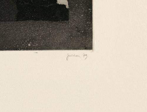 1979. Radierung / Aquatinta & Strichätzung, in Schwarz, auf schwerem chamois Hahnemühle. – Originale Künstlergrafik, von Christine Perthen. – Vorzugsdruck. – 29,5 x 24,7 cm (Darstellung / Platte), 54 x 40 cm (Blatt).