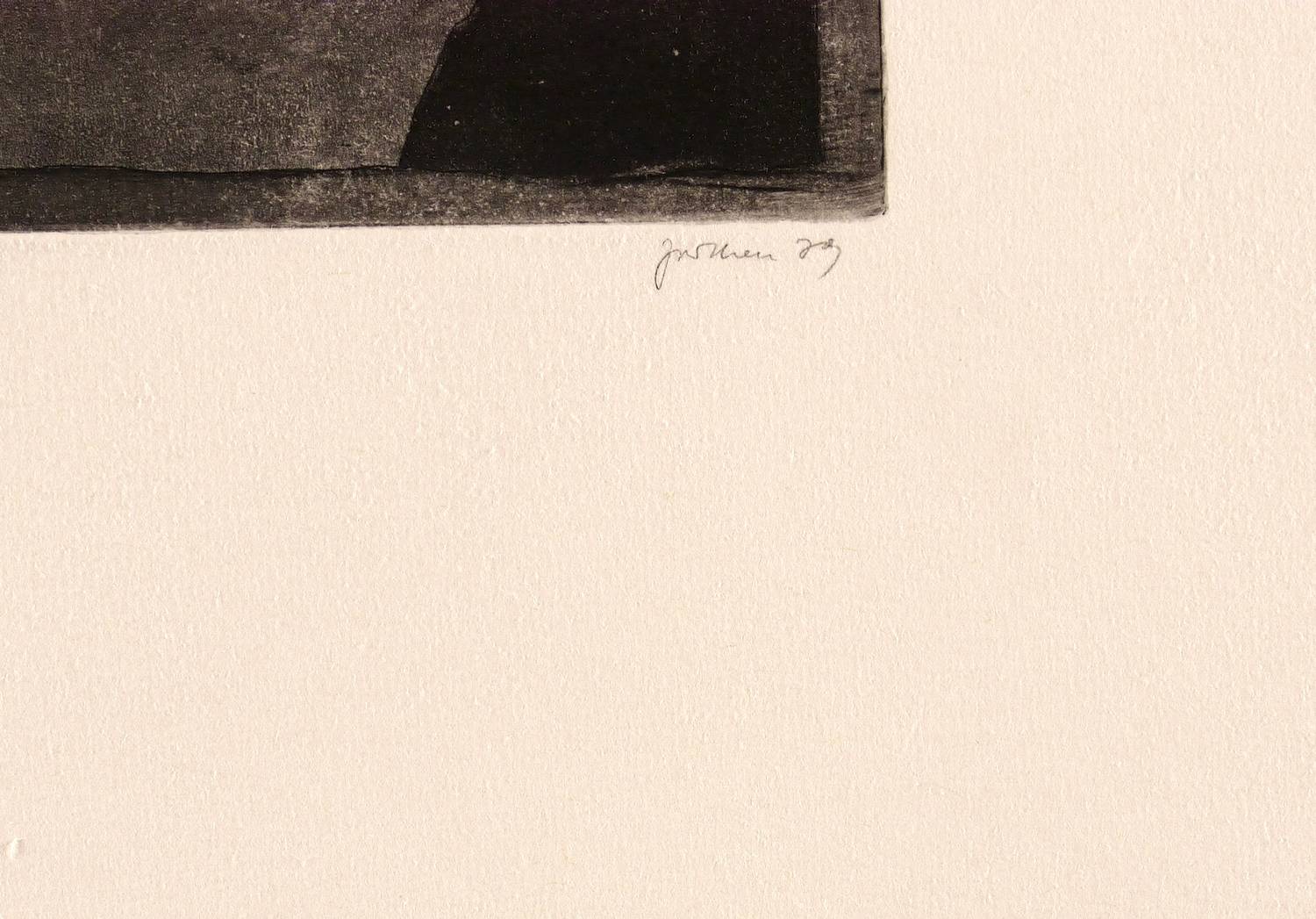 1979. Radierung / Aquatinta & Strichätzung, in Schwarz, auf schwerem chamois Hahnemühle. – Originale Künstlergrafik, von Christine Perthen. – Vorzugsdruck. – 15,8 x 24,5 cm (Darstellung / Platte), 54 x 40 cm (Blatt).