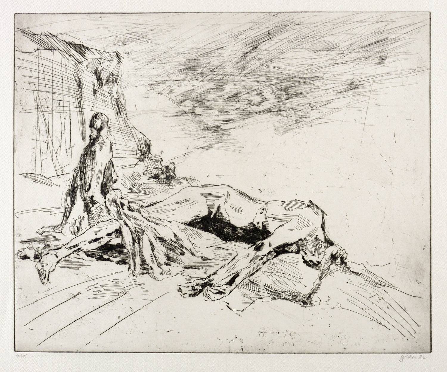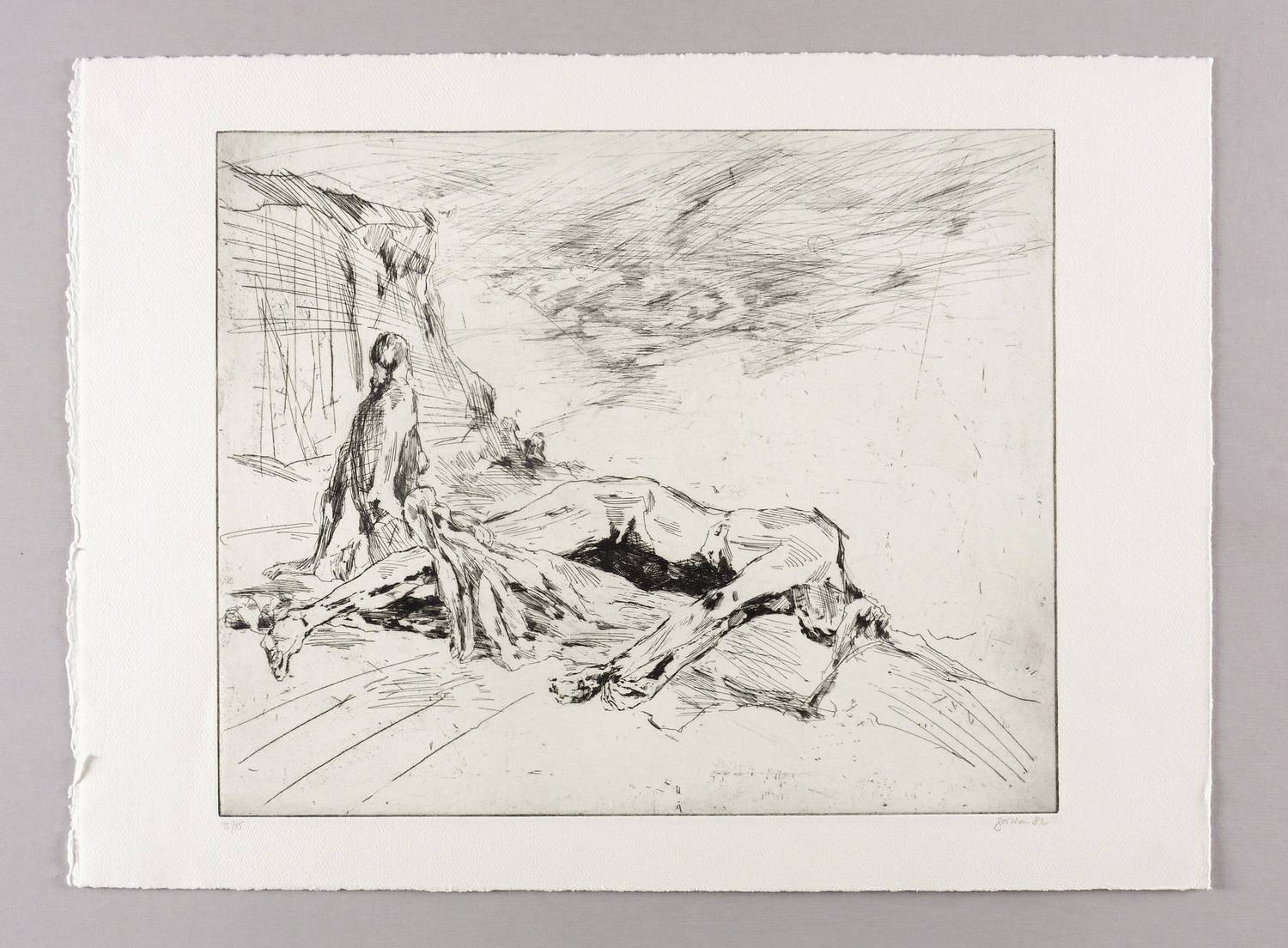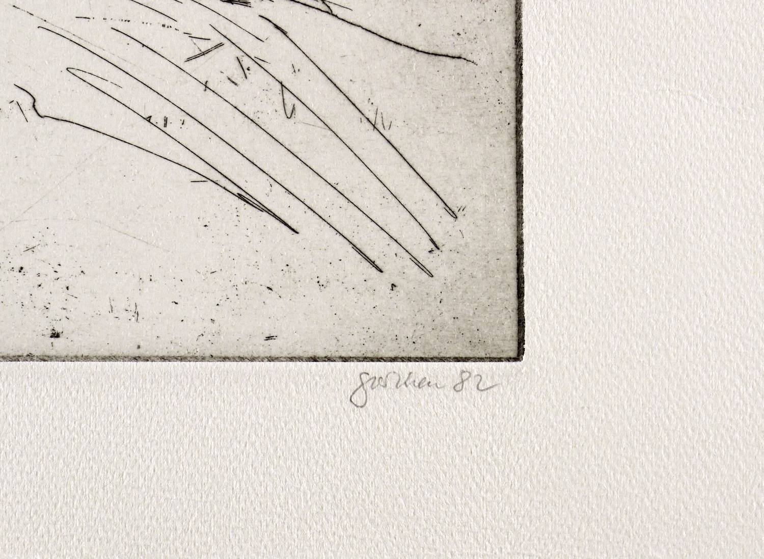 1982. Radierung / Strichätzung & Kaltnadel, in Schwarz, auf schwerem hellchamois Hahnemühle. – Originale Künstlergrafik, von Christine Perthen. – Auflage Exemplar Nr. 15/15. – 32,3 x 39,5 cm (Darstellung / Platte), 40 x 54 cm (Blatt).