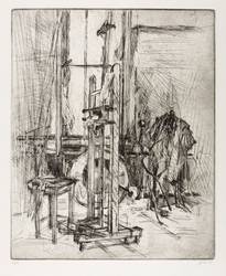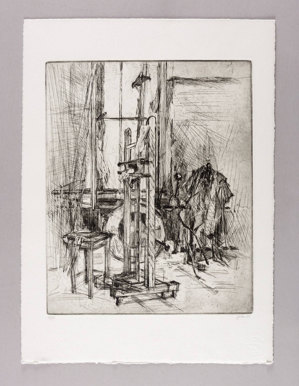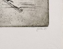 1981. Radierung / Strichätzung & Kaltnadel, in Schwarz, auf schwerem hellchamois Hahnemühle. – Originale Künstlergrafik, von Christine Perthen. – Auflage Exemplar Nr. 15/15. – 39,5 x 32,5 cm (Darstellung / Platte), 54 x 40 cm (Blatt).