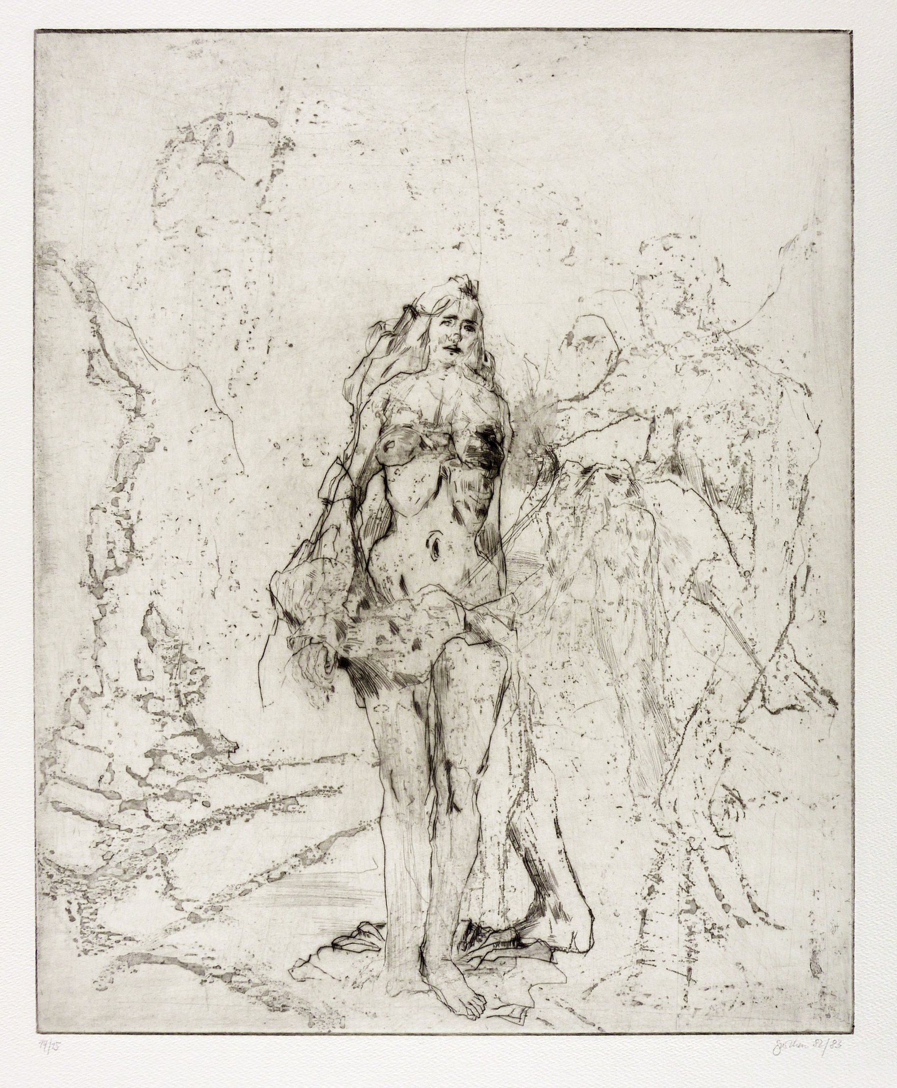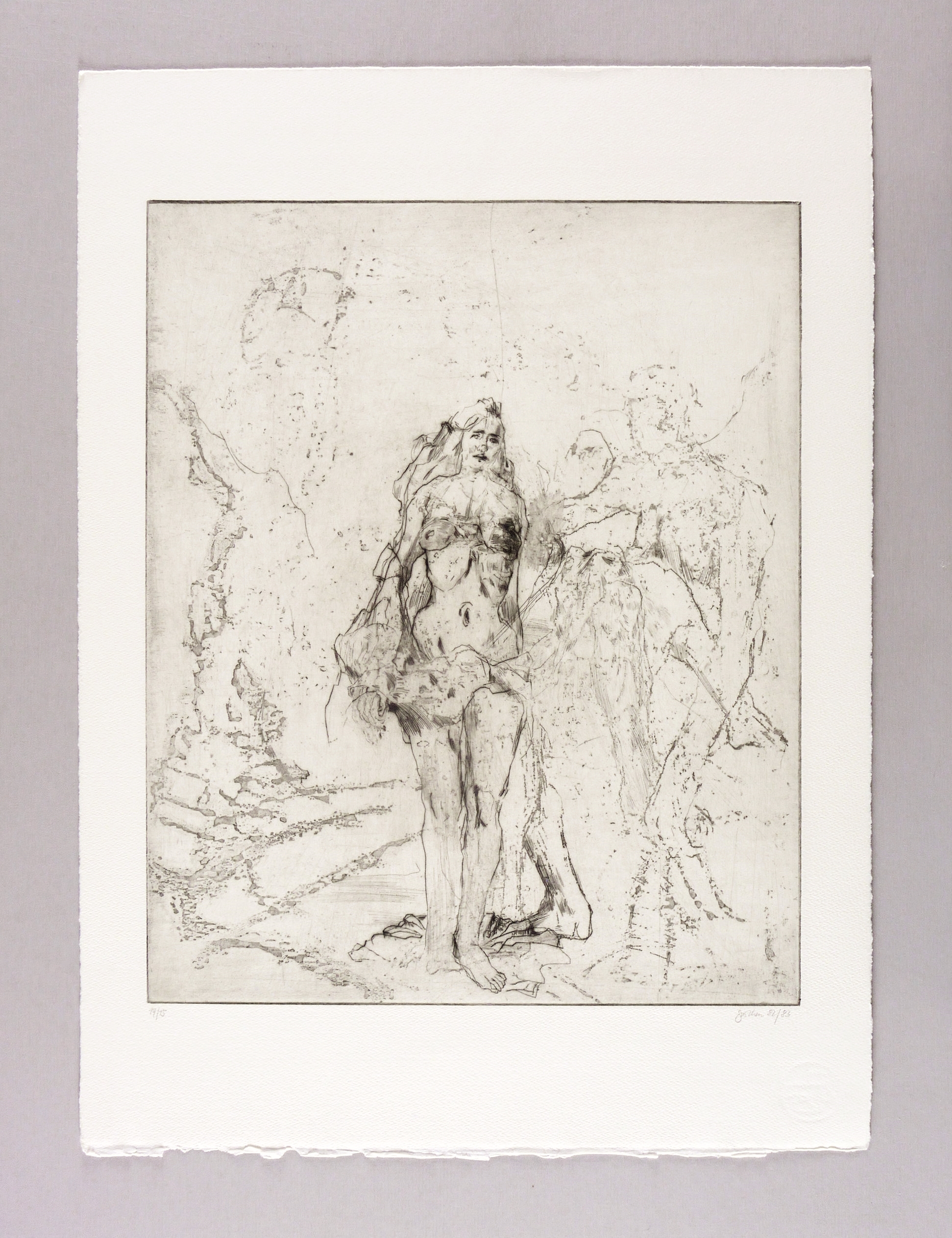 1982/1983. Radierung / Aquatinta, Strichätzung & Kaltnadel, in Schwarz, auf schwerem hellchamois Hahnemühle. – Originale Künstlergrafik, von Christine Perthen. – Auflage Exemplar Nr. 14/15. – 39,8 x 32,5 cm (Darstellung / Platte), 54 x 40 cm (Blatt).
