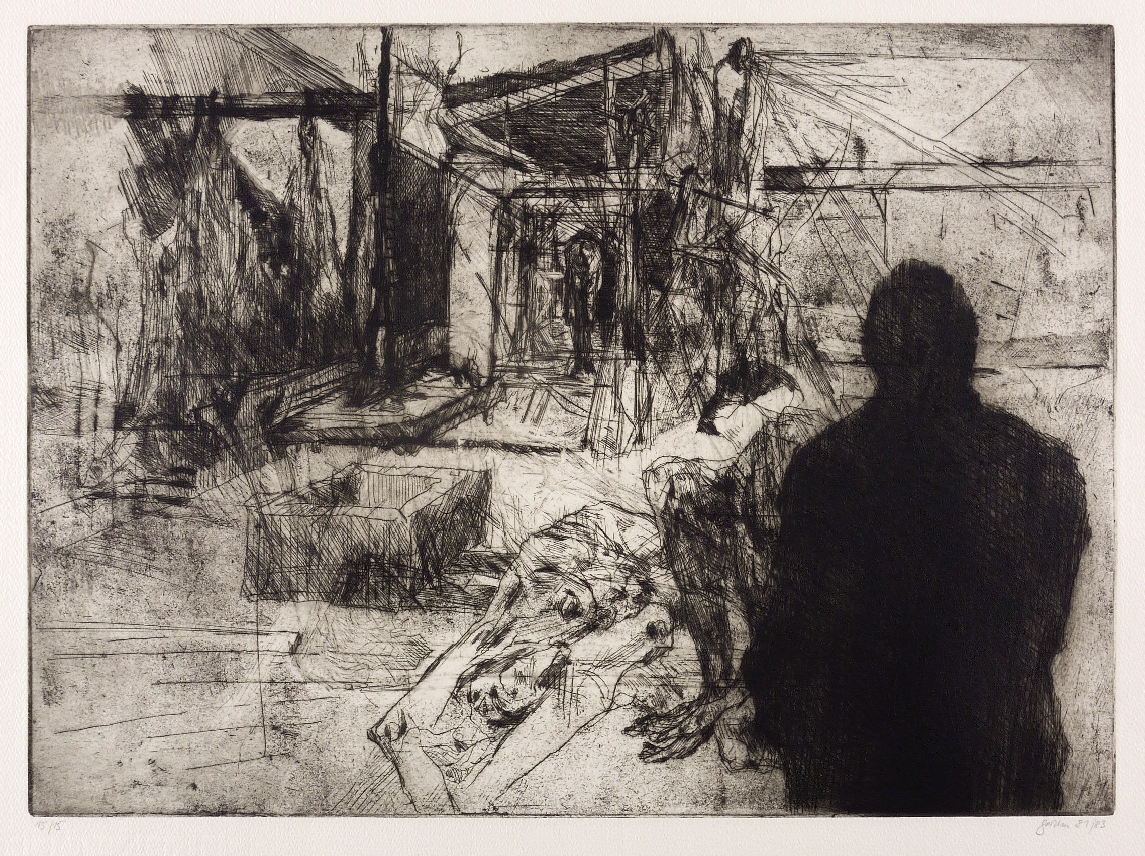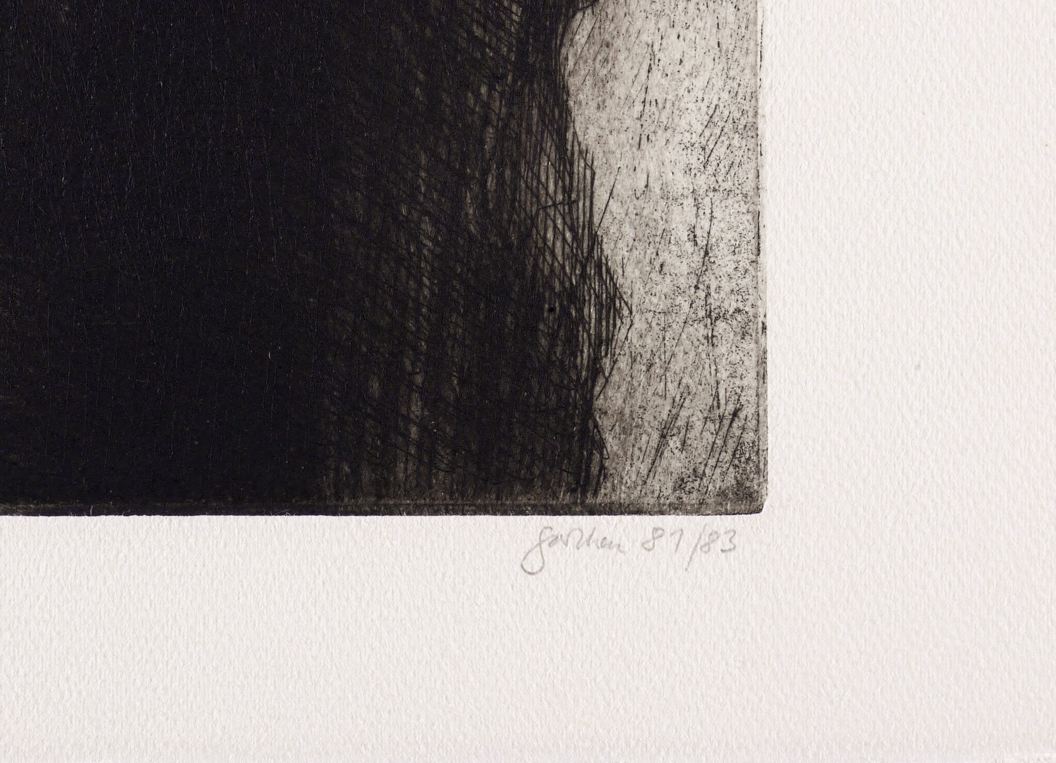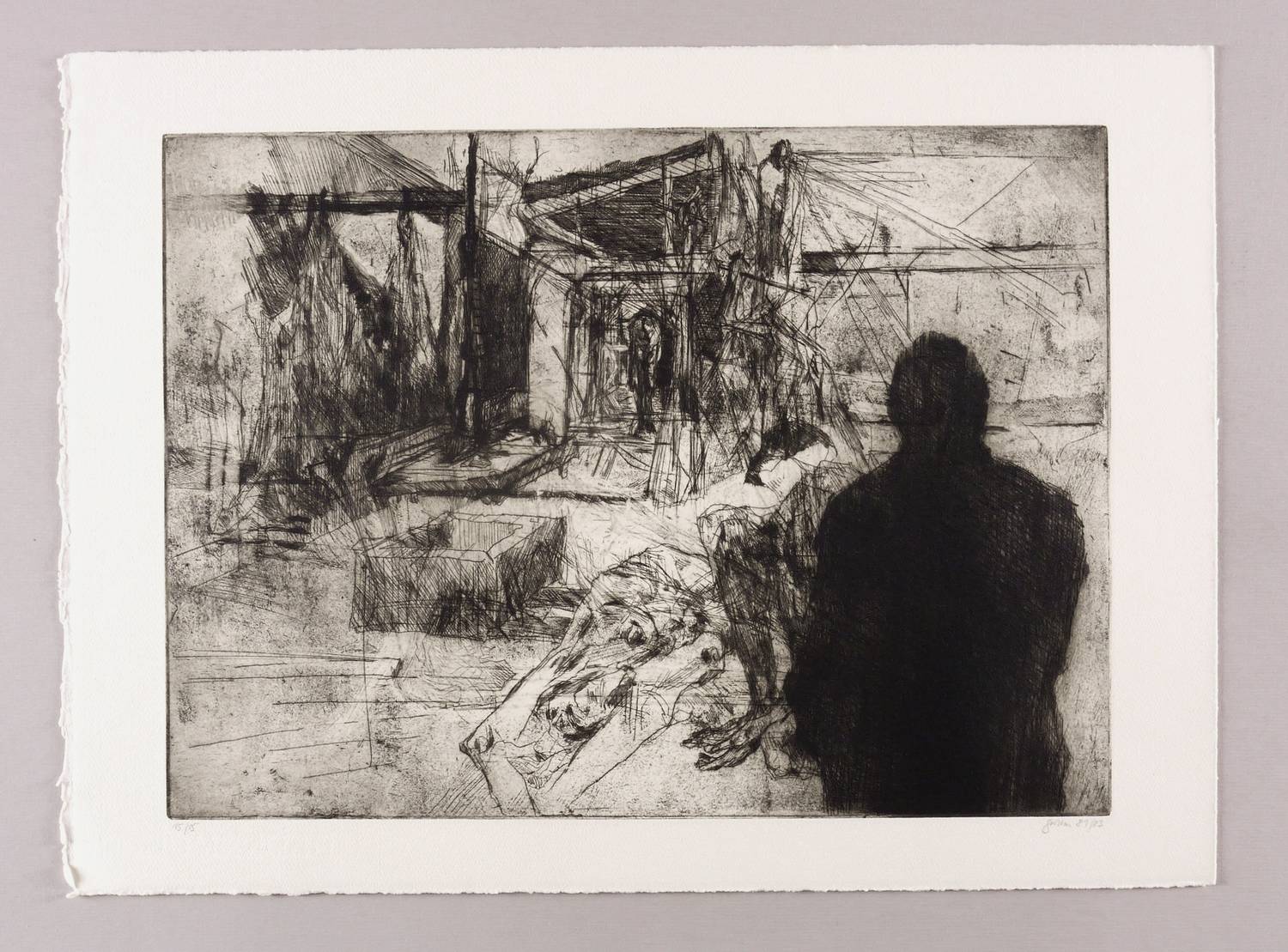 1981/1983. Radierung / Aquatinta, Strichätzung & Kaltnadel, in Schwarz, auf schwerem hellchamois Hahnemühle. – Originale Künstlergrafik, von Christine Perthen. – Auflage Exemplar Nr. 15/15. – 32,2 x 44,2 cm (Darstellung / Platte), 40 x 54 cm (Blatt).