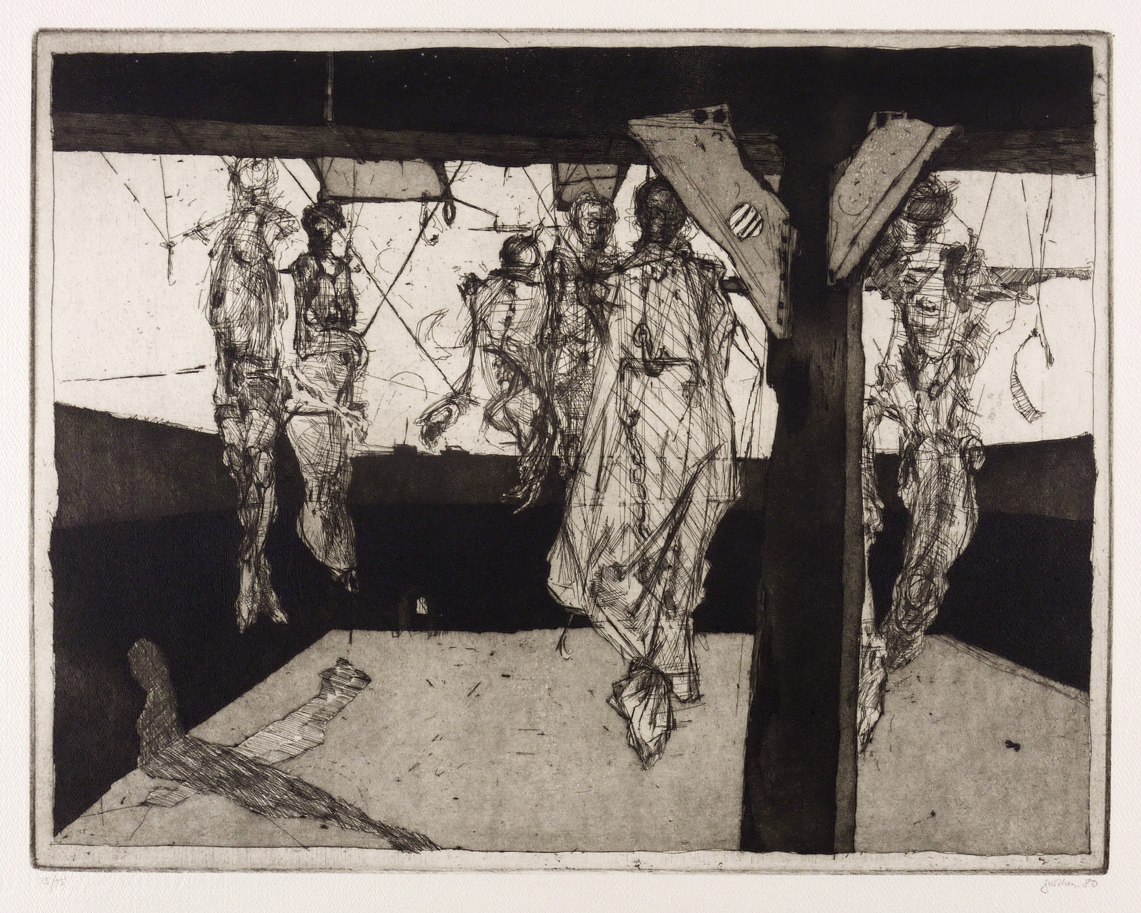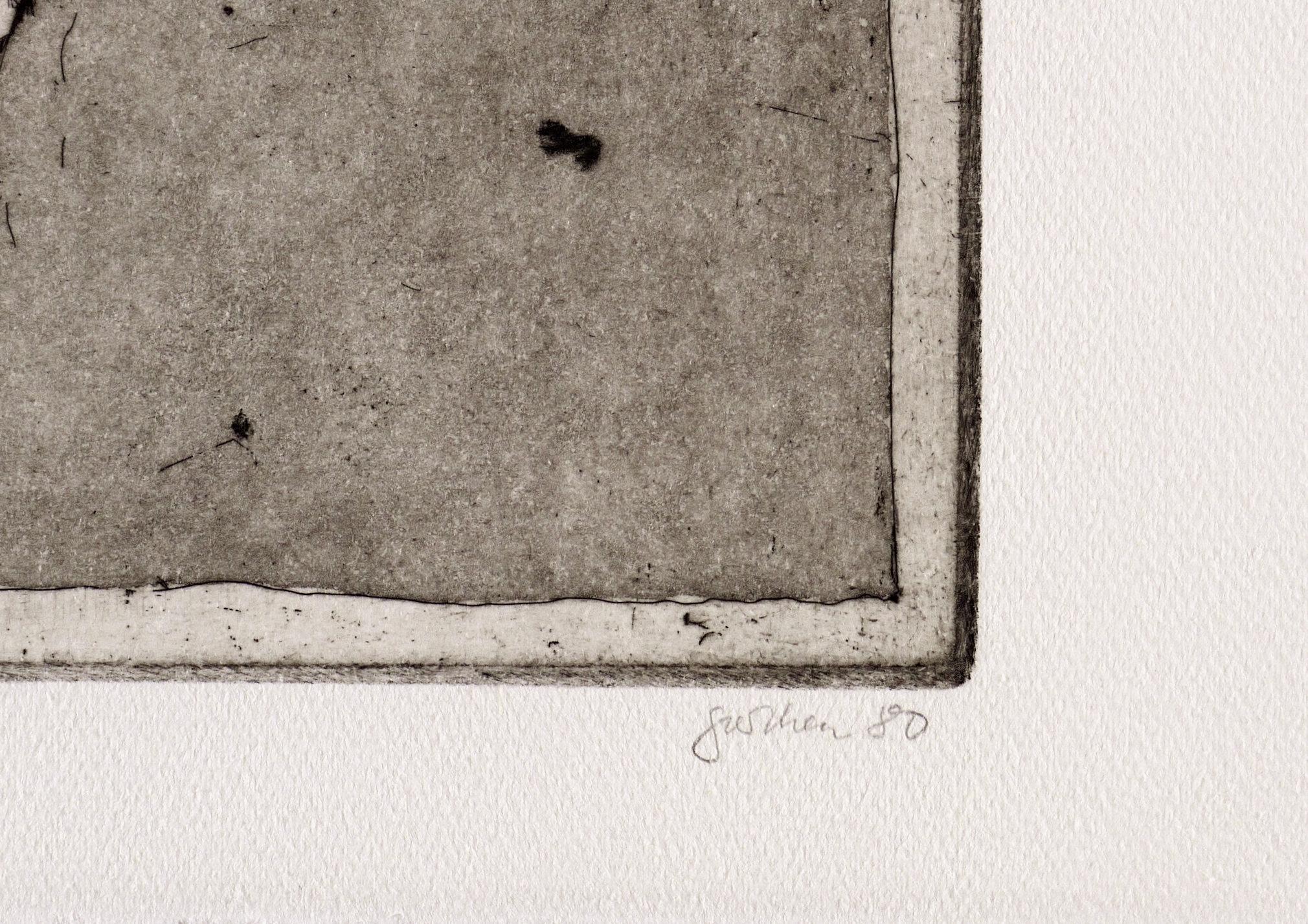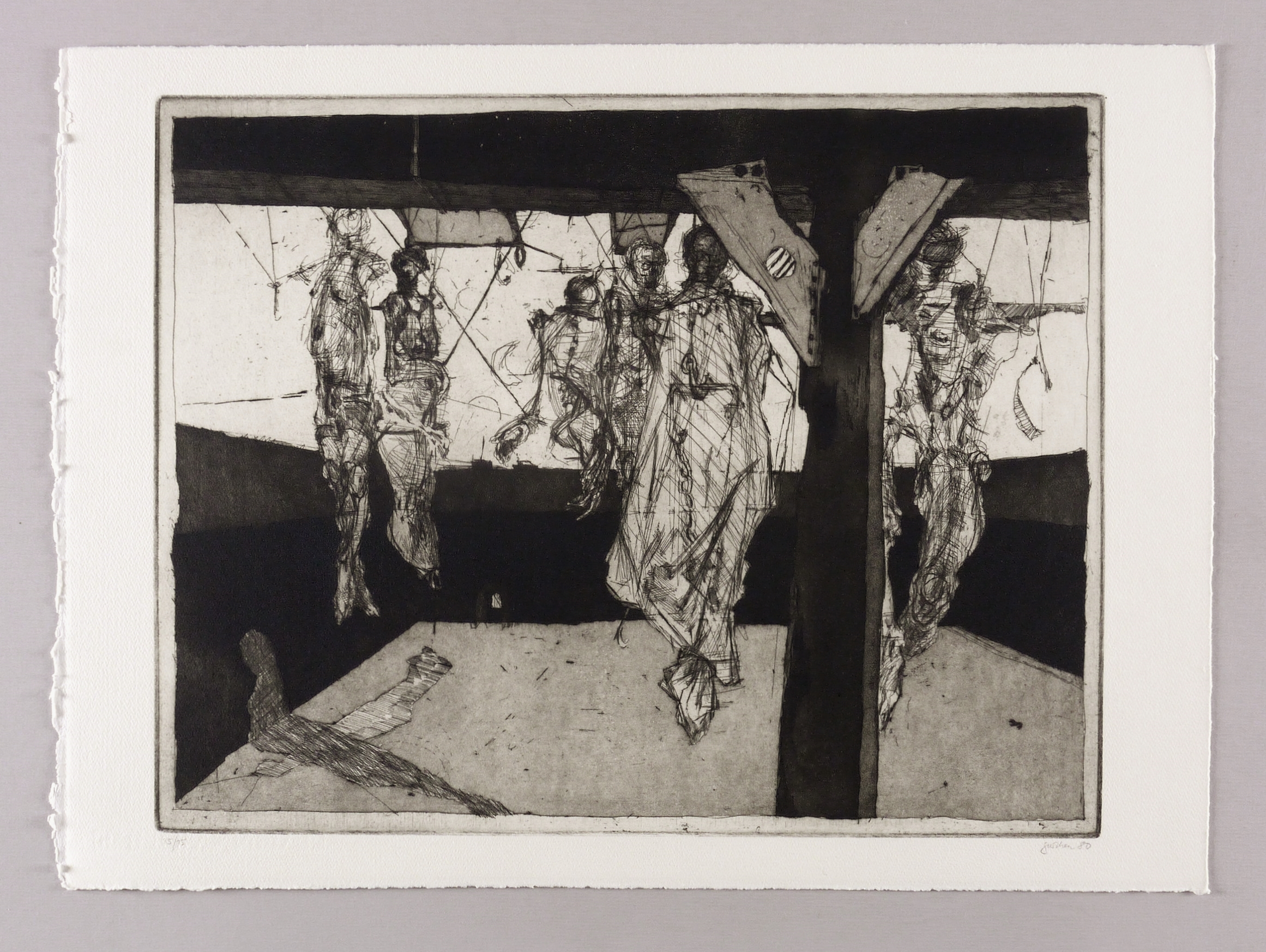 1980. Radierung / Aquatinta, Strichätzung & Kaltnadel, in Schwarz, auf schwerem hellchamois Hahnemühle. – Originale Künstlergrafik, von Christine Perthen. – Auflage Exemplar Nr. 15/15. – 32,7 x 44,3 cm (Darstellung / Platte), 40 x 54 cm (Blatt).
