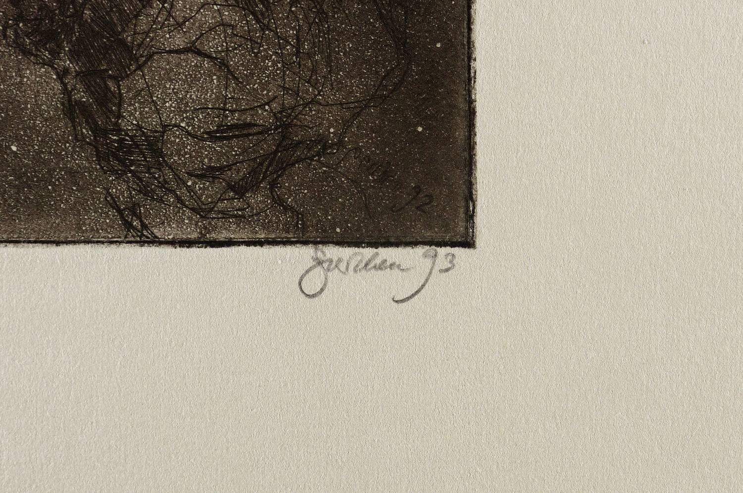 Rechts unten in Bleistift signiert und datiert: ″perthen 93″. Links Auflagenbezeichnung: ″Vorzugsdruck″. In der Platte rechts unten nochmals Signatur und Jahr: ″perthen 92″. Verso Widmung der Künstlerin. – Sehr guter Zustand.