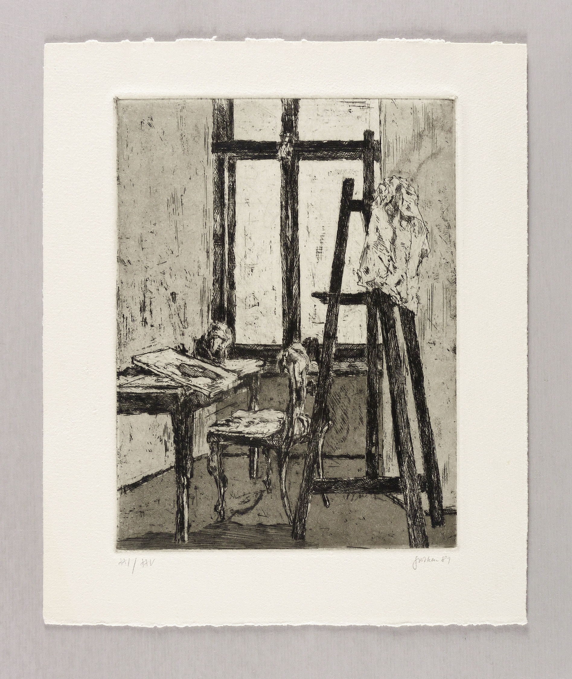 1981. Radierung / Aquatinta, Strichätzung & Kaltnadel, in Schwarz, auf hellchamois Velin. – Originale Künstlergrafik, von Christine Perthen. – Auflage Exemplar Nr. XXI/XXV. – 23,6 x 17,6 cm (Darstellung / Platte), 31 x 26 cm (Blatt).